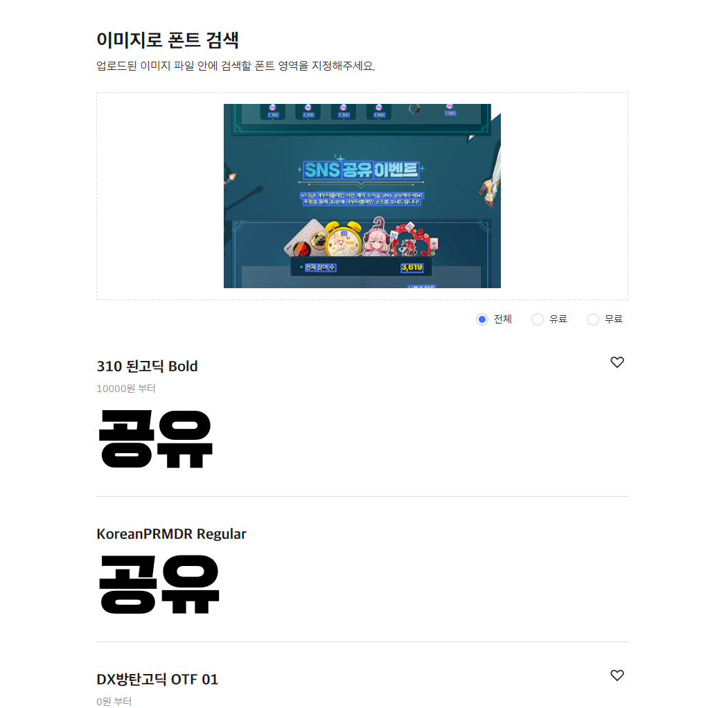 제법 잘 나올때도 있고, 비슷한 여러 폰트를 검색해 결과를 보여주니 편하다!