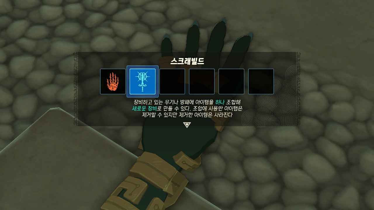 이 곳에서는 스크래빌드 능력을 받게 되는데, 이 기능은 2개의 아이템을 조합하여 새로운 형태의 아이템을 만드는 기술이다.