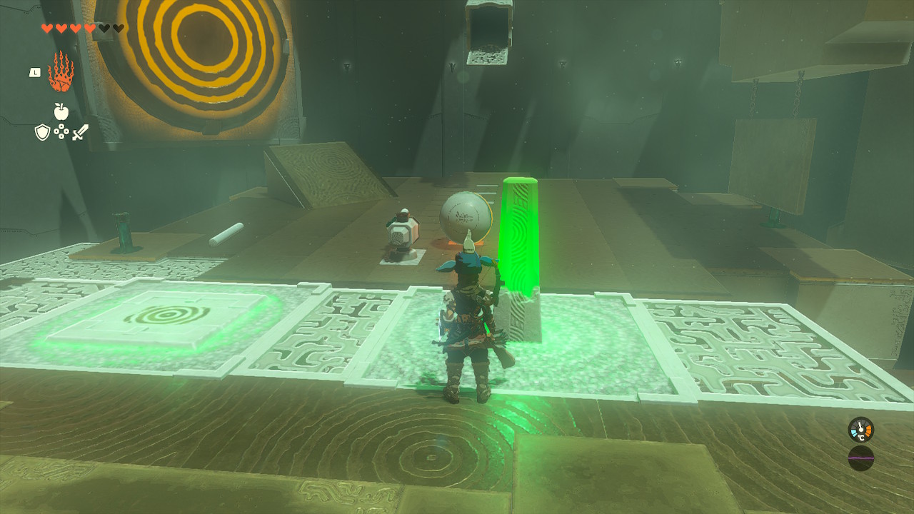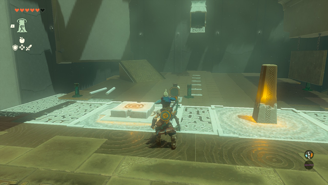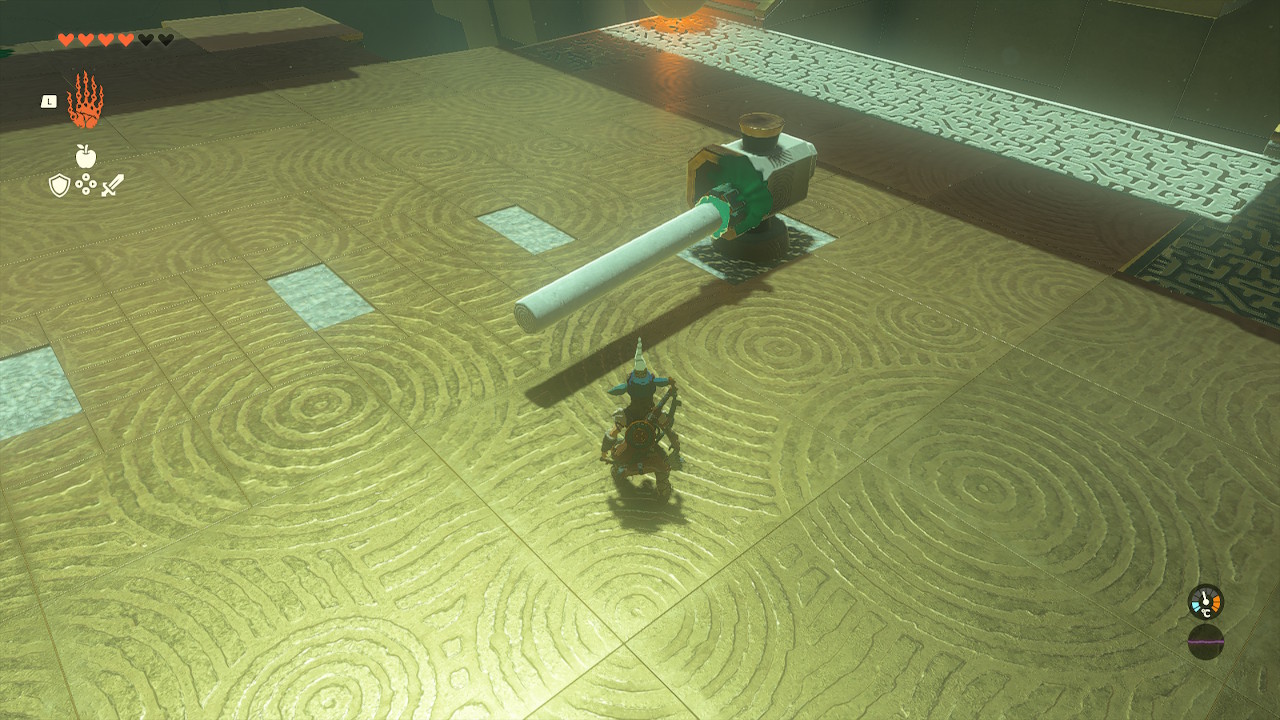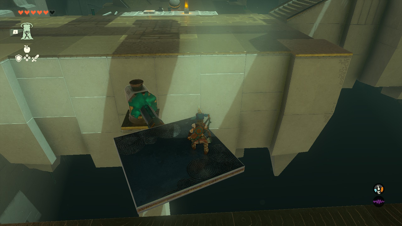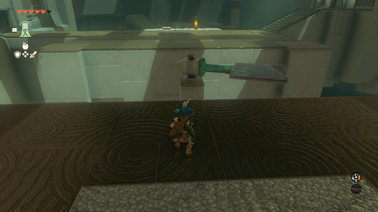 이제 건너가면 올라가면 작동되는 스위치와 무기로 휘둘르면 저 멀리 회전 되는 기기가 움직인다.