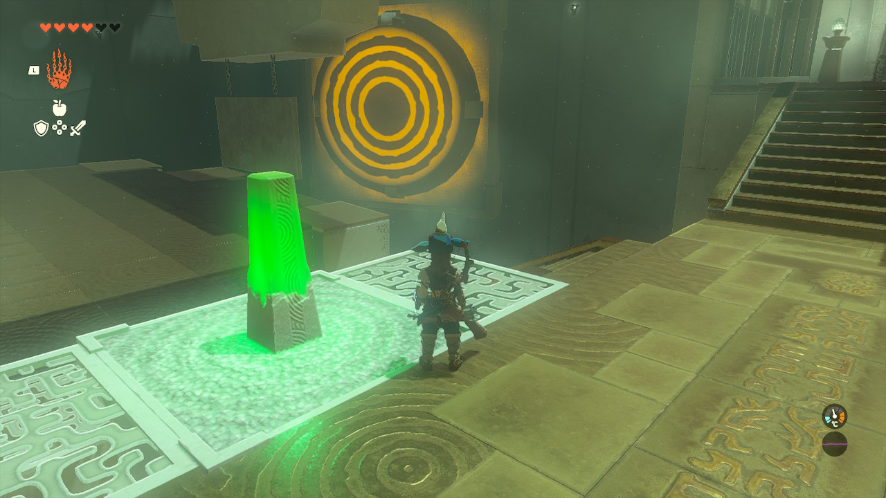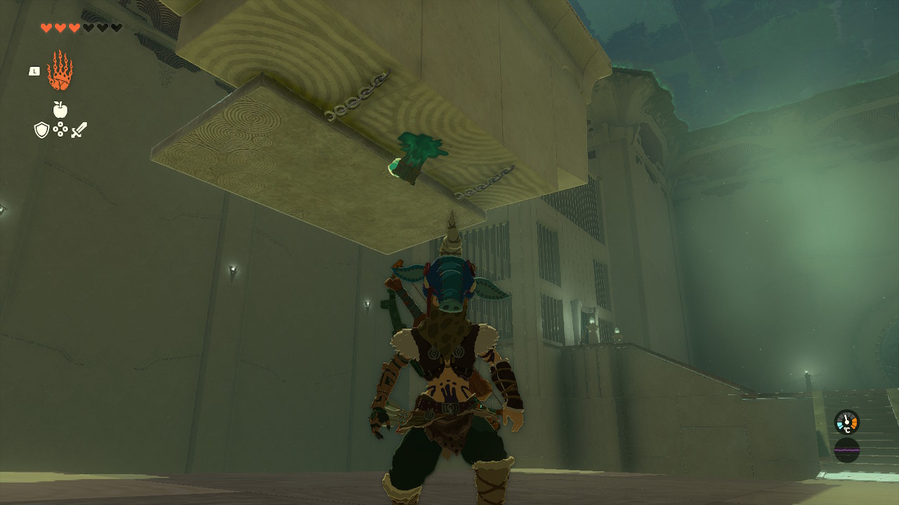 이제 건너가면 올라가면 작동되는 스위치와 무기로 휘둘르면 저 멀리 회전 되는 기기가 움직인다.