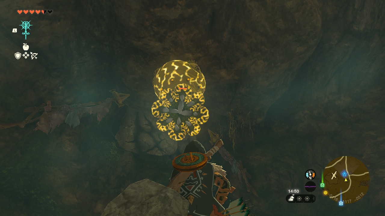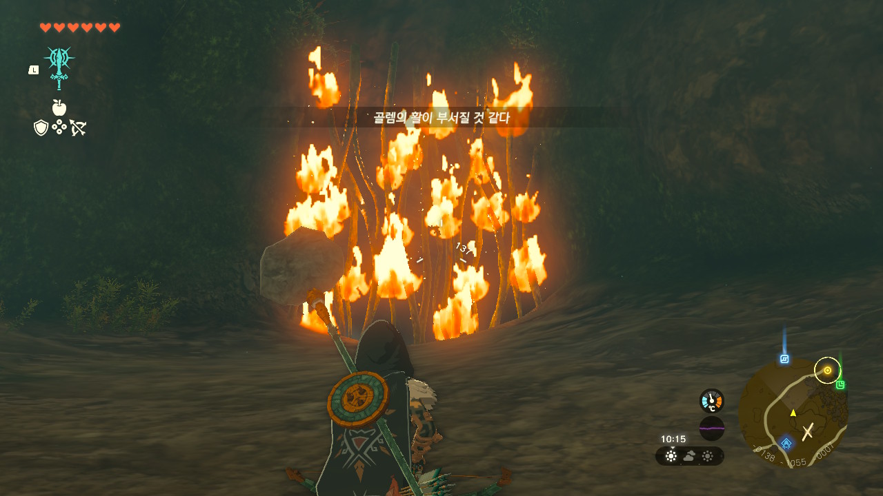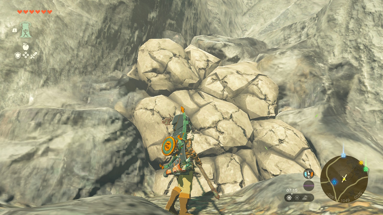 입구가 막혀 있는 동굴이 보이는데 해머 무기나 폭팔 화살등으로 깨부수고 들어가면 된다.
