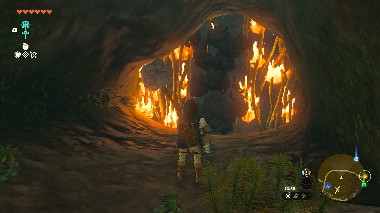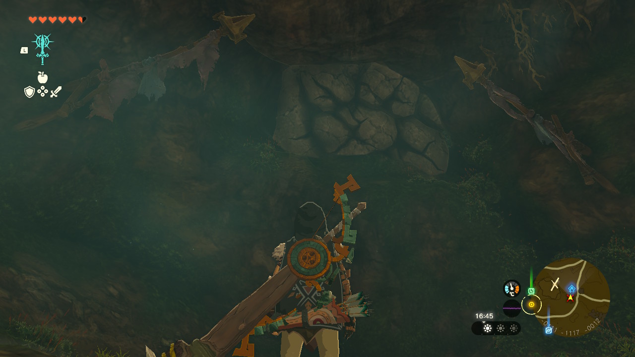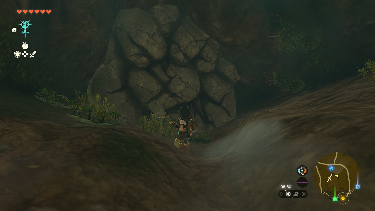 입구가 막혀 있는 동굴이 보이는데 해머 무기나 폭팔 화살등으로 깨부수고 들어가면 된다.