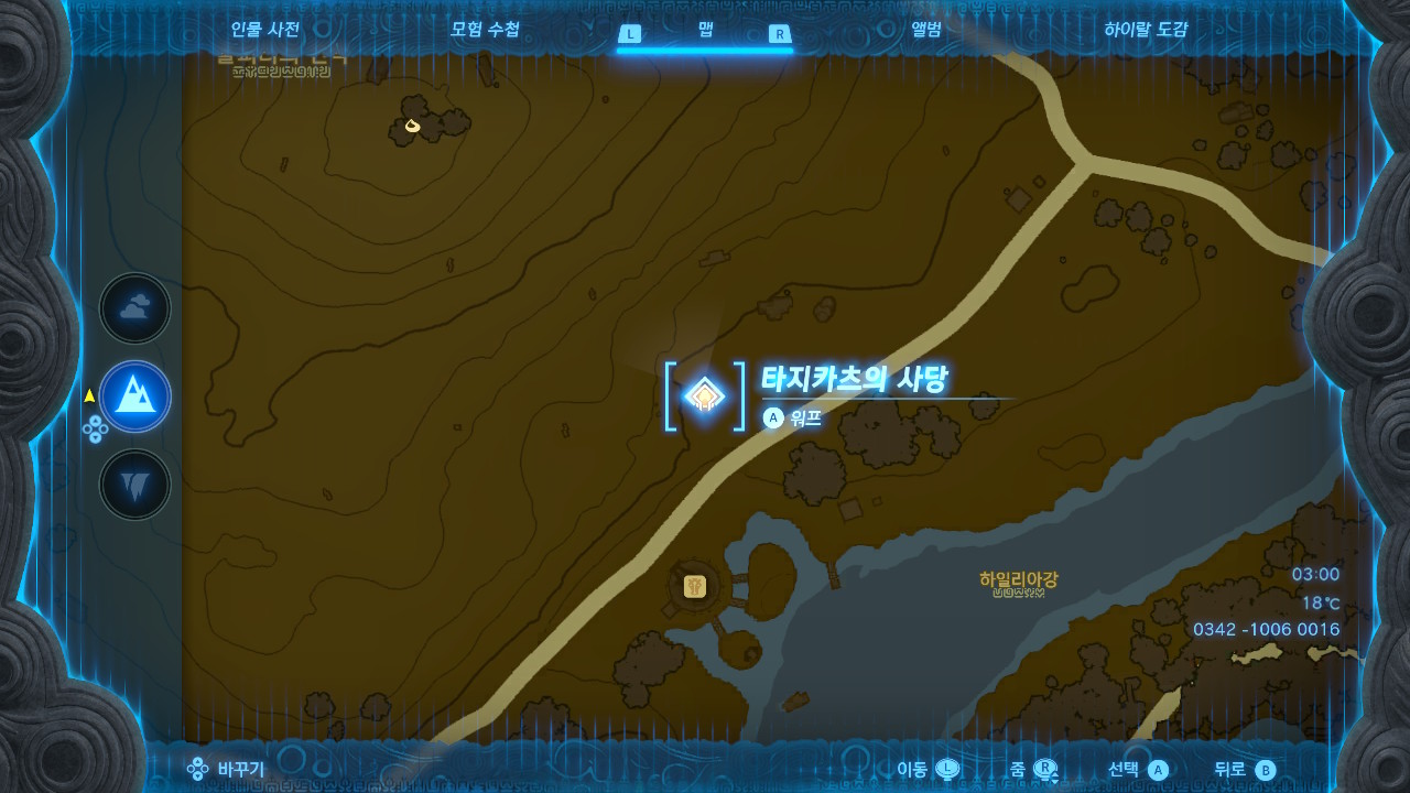 하이랄 평원에 있는 타지카츠의 사당은 아래 맵 위치를 참고 하면 된다.