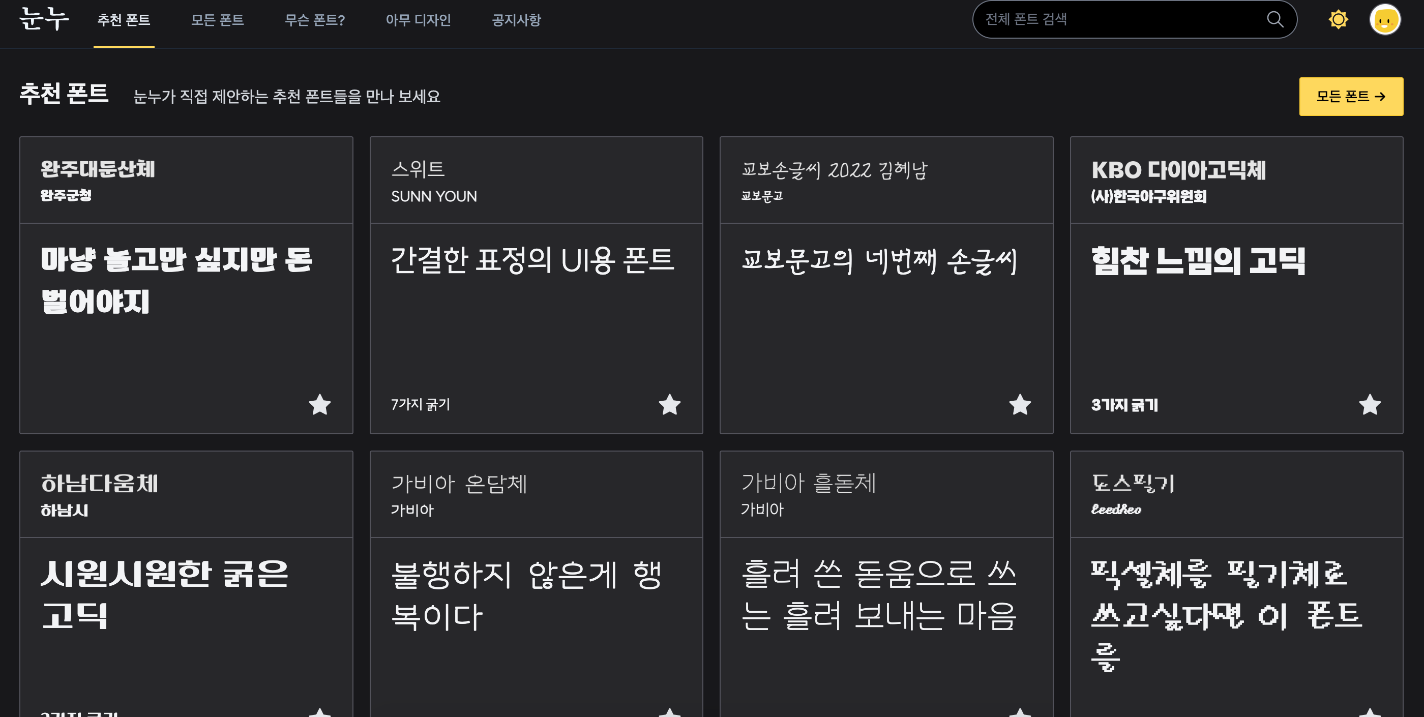 [눈누] 국문 폰트 검색 및 무료 폰트 다운로드 사이트