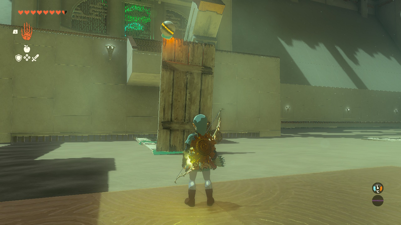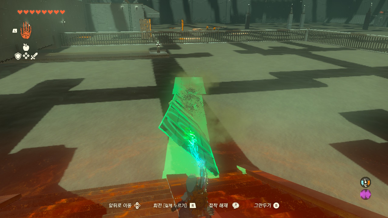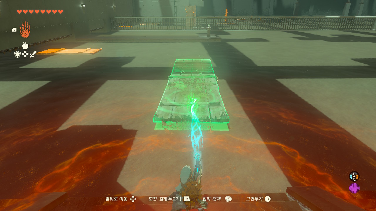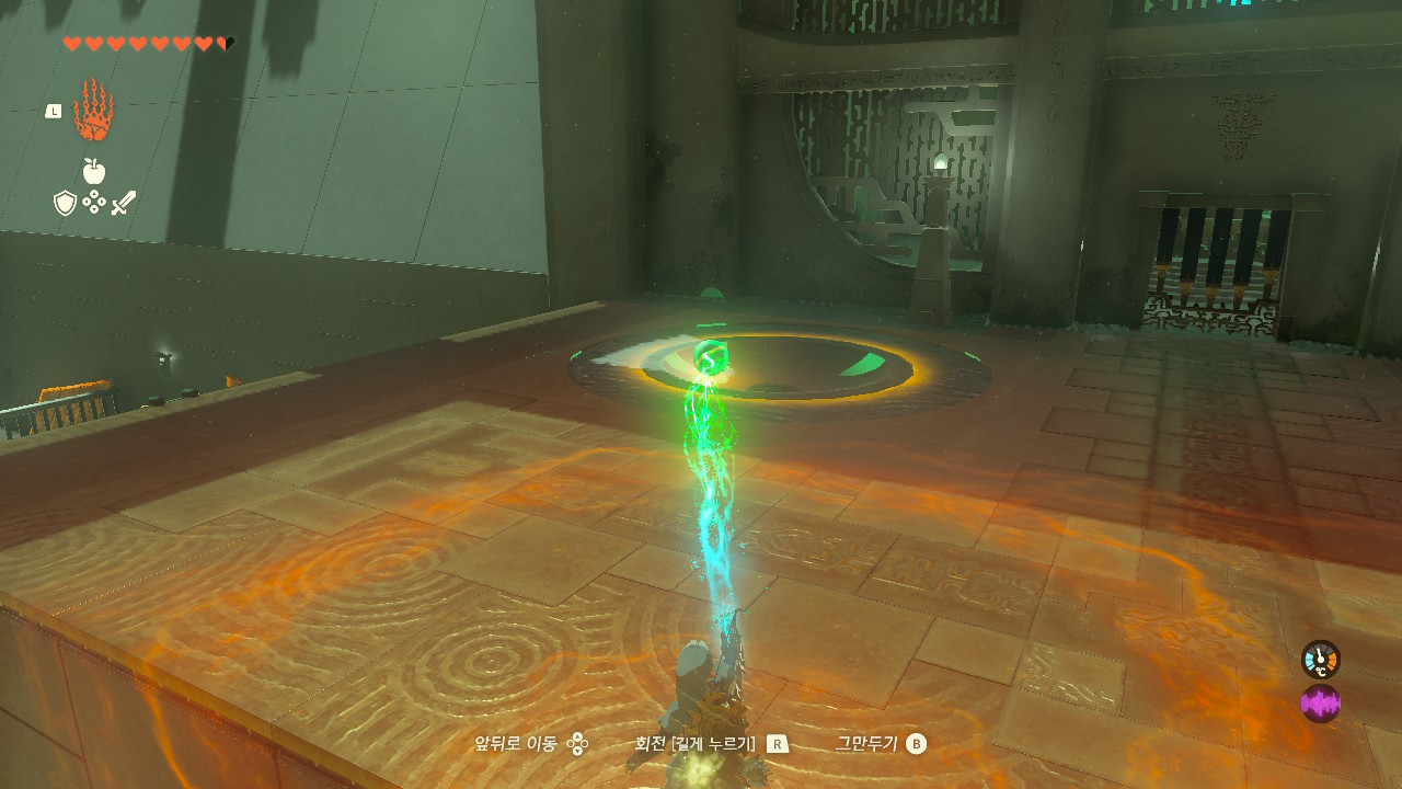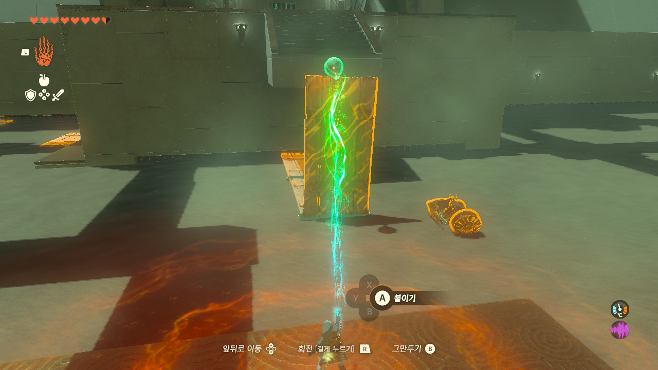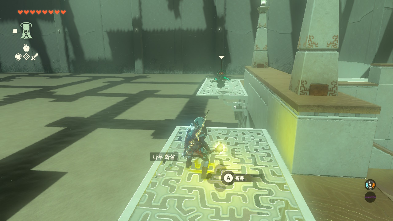 위로 올라가서 스위치를 작동하면 쇠 구슬이 저기 멀리 날아가 버리는데 그 구슬을 다시 가지고 와야 한다.