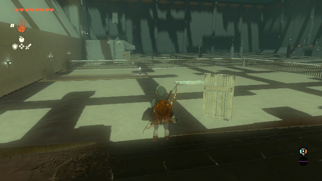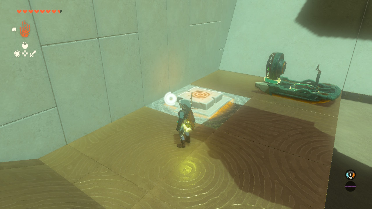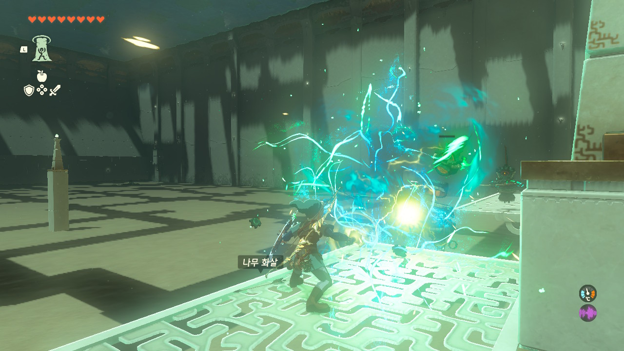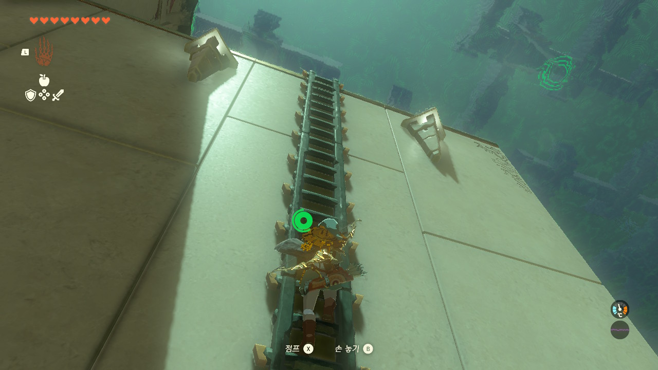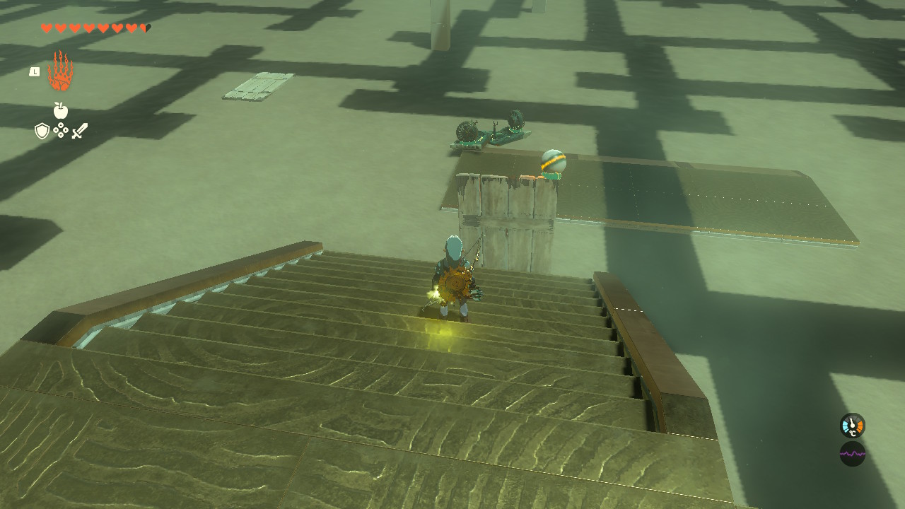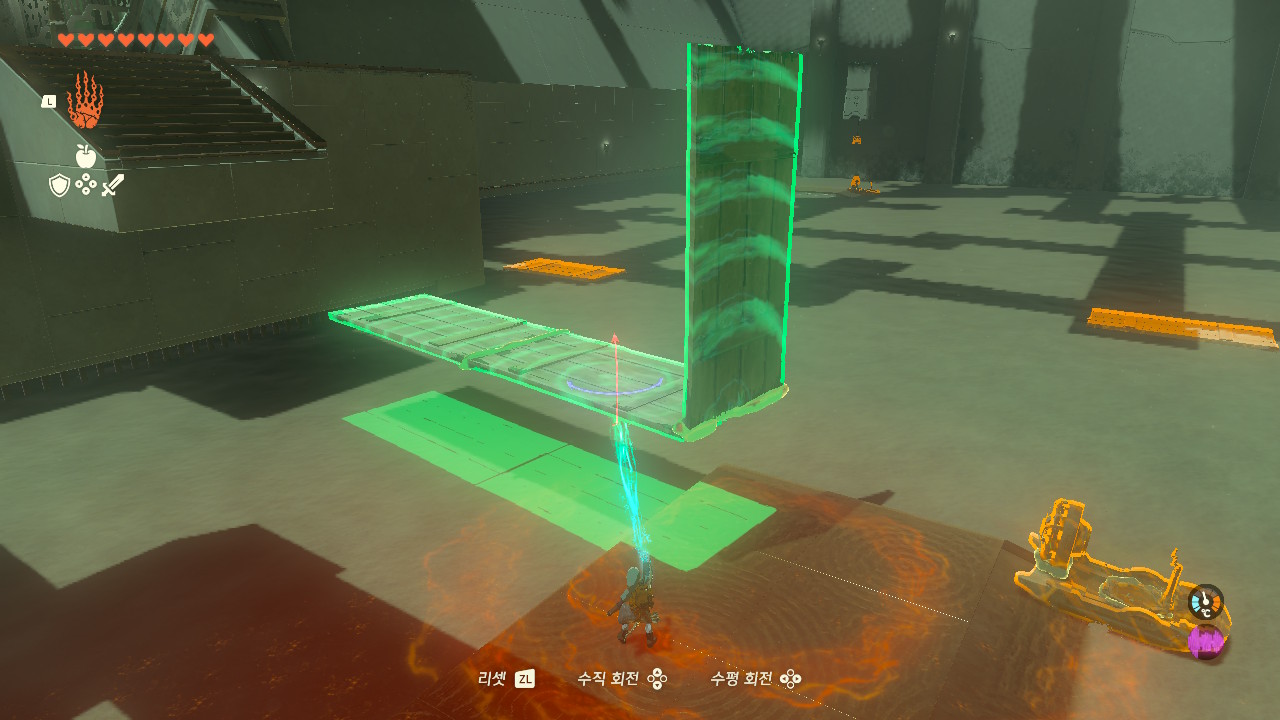 위로 올라가서 스위치를 작동하면 쇠 구슬이 저기 멀리 날아가 버리는데 그 구슬을 다시 가지고 와야 한다.