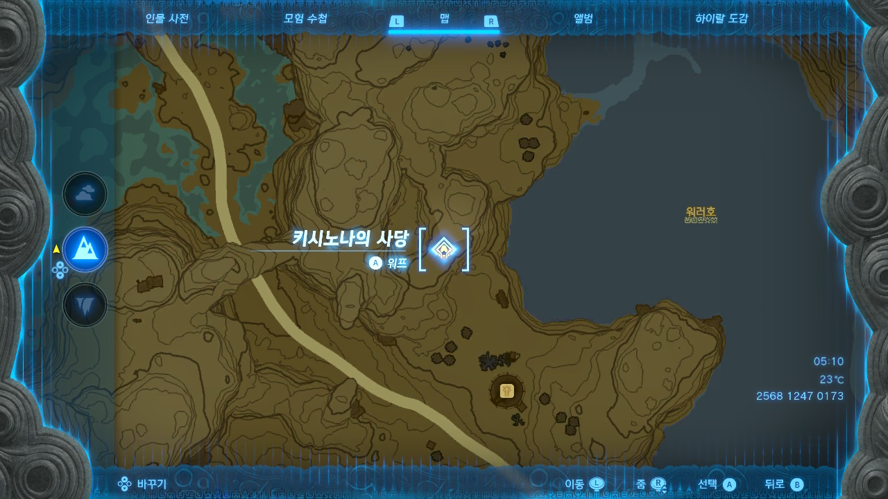 키시노나의 사당위치는 아래 맵 화면을 참고