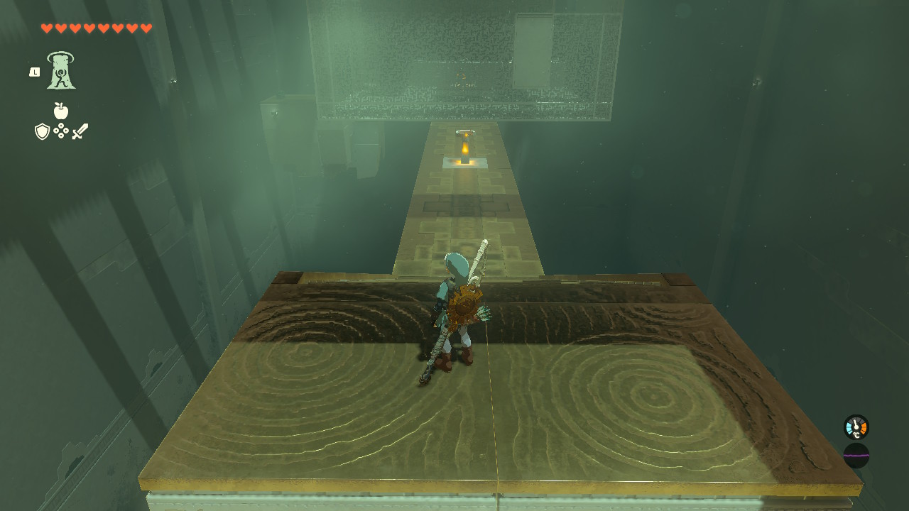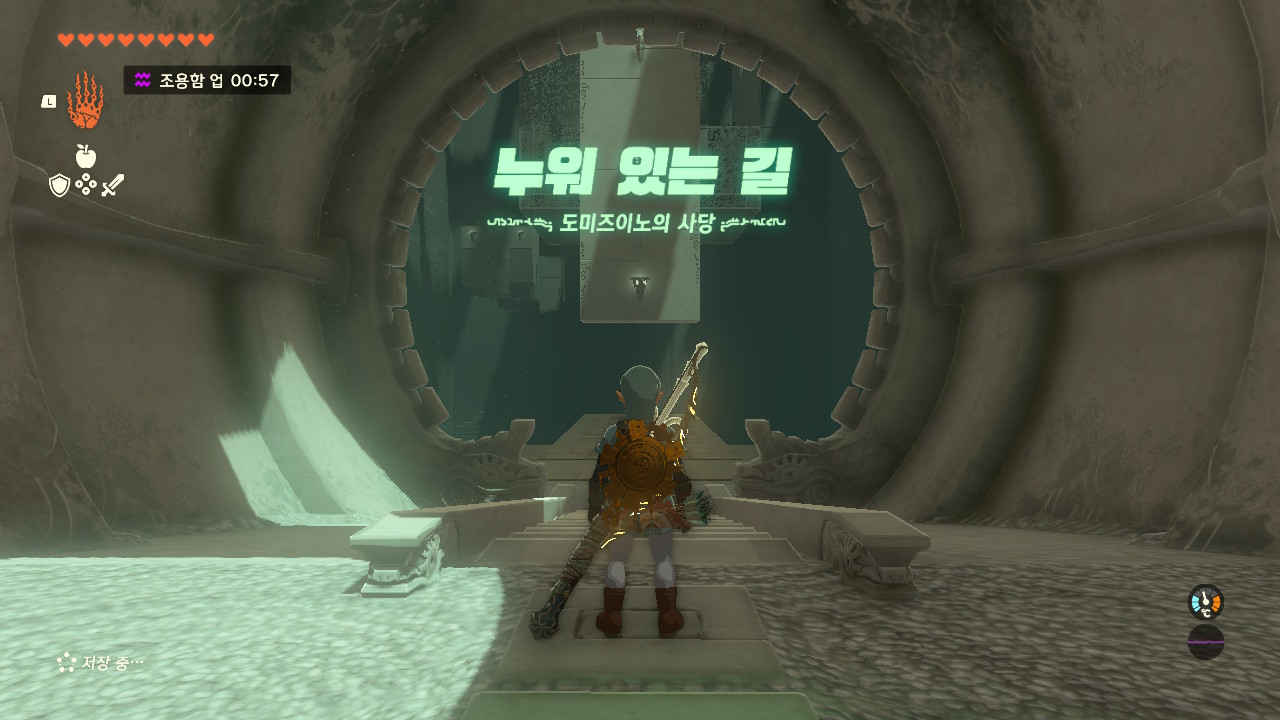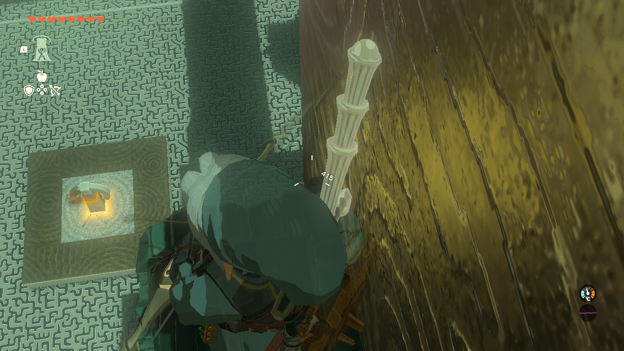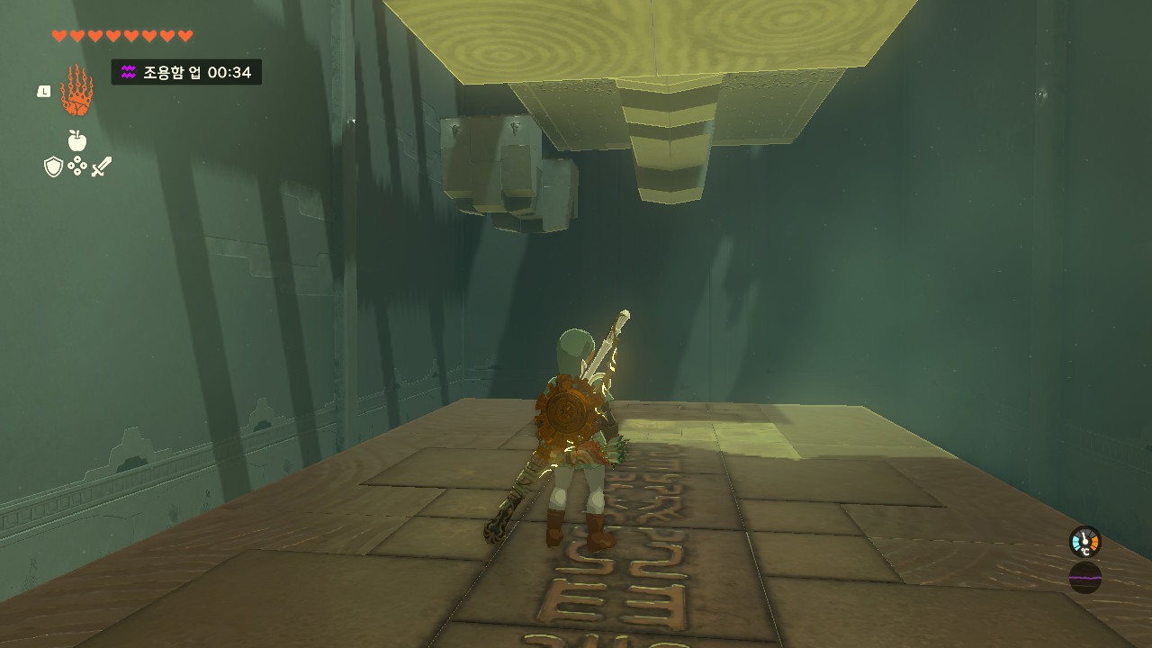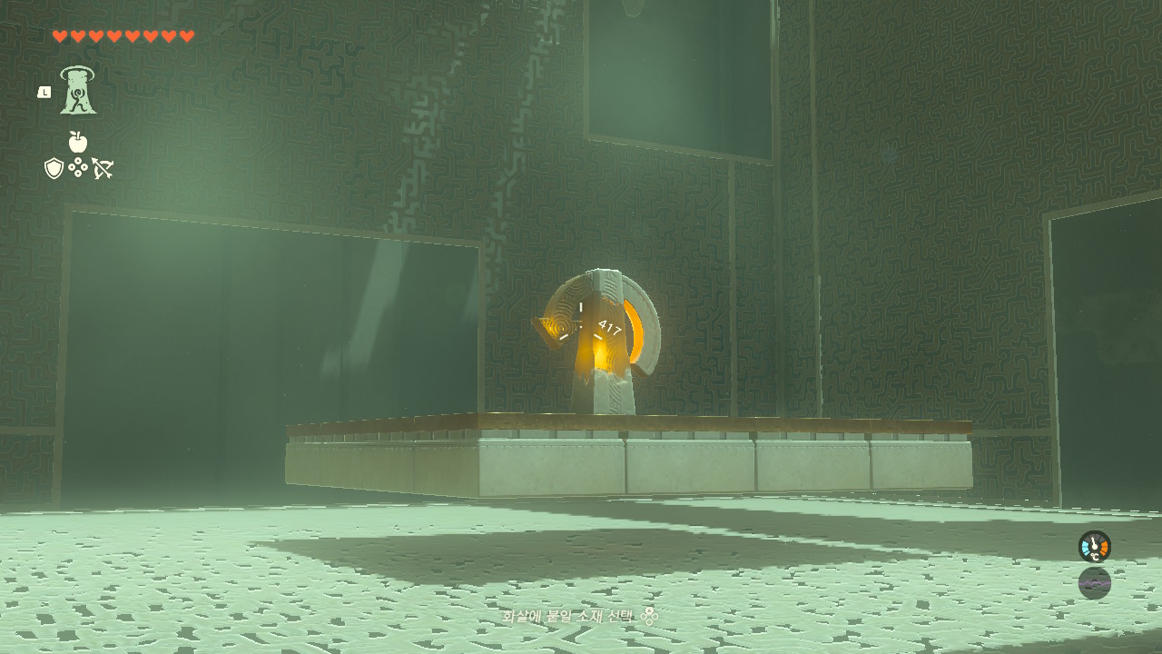핵심은 보물상자에 몸을 기댄채 화살로 가운데 조정기를 때려 동작시키면서 위로 올라가면 됨