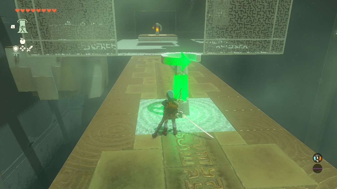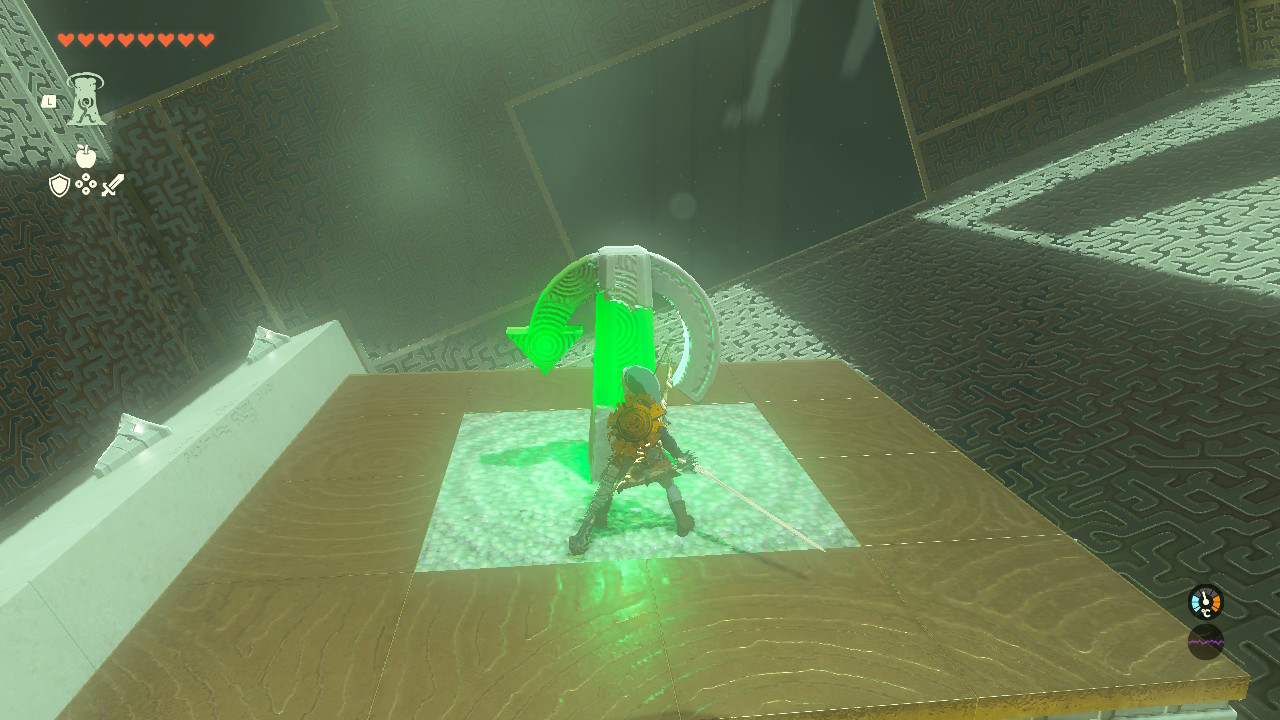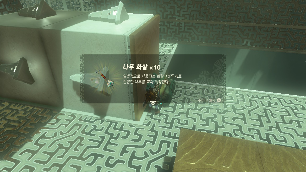 핵심은 보물상자에 몸을 기댄채 화살로 가운데 조정기를 때려 동작시키면서 위로 올라가면 됨