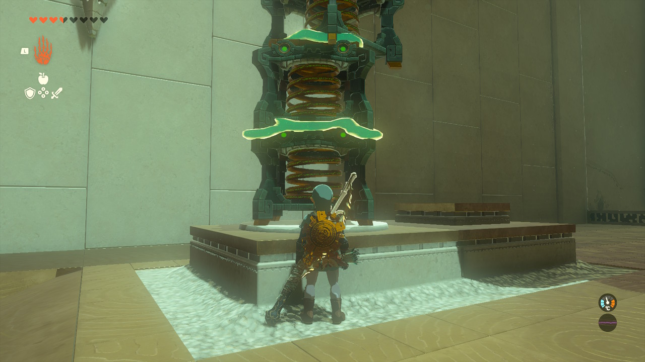 저 멀리 있는 구슬을 가지고 와야 하므로 건너간뒤에 아래 이미지와 같이 비스듬히 용수철을 놓고 쇠구슬을 가운데 흠사이에 넣고 작동시켜 저 멀리 보내면 된다.