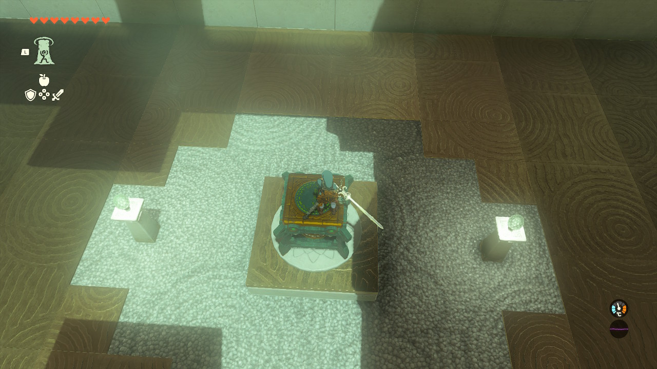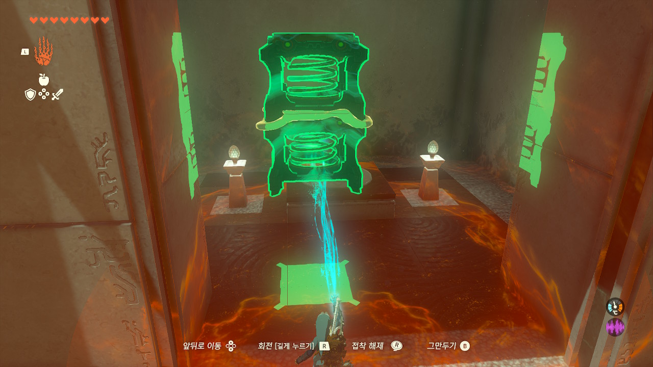 저 멀리 있는 구슬을 가지고 와야 하므로 건너간뒤에 아래 이미지와 같이 비스듬히 용수철을 놓고 쇠구슬을 가운데 흠사이에 넣고 작동시켜 저 멀리 보내면 된다.