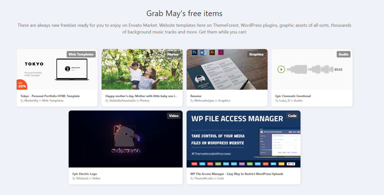 Envato Market의 5월달 무료 다운로드 소스 다운로드 기한이 1일 남았네~\