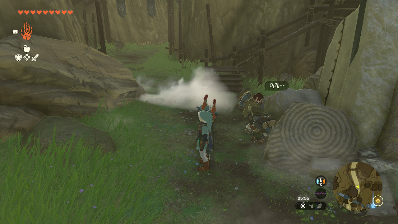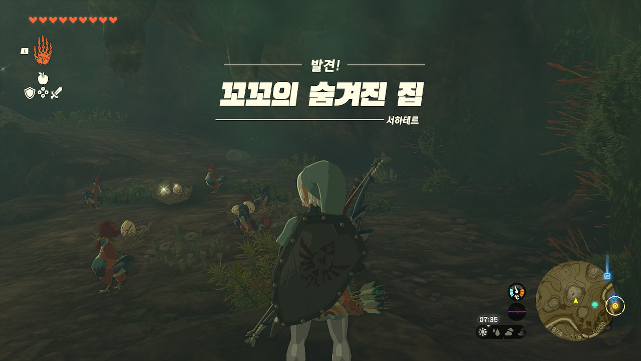 여기에 꼬꼬들이 알을 낳아 숨겨 두었는데 이걸 다 가지고 가면 클리어 된다.