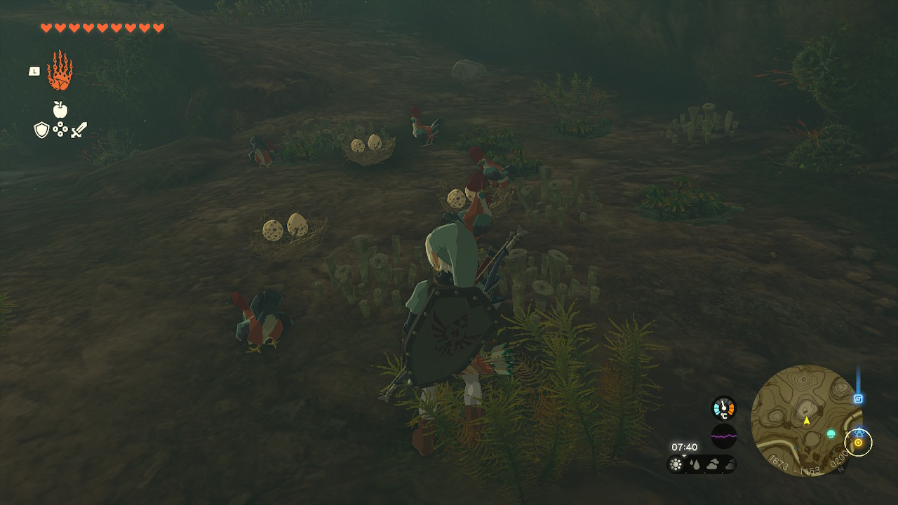 여기에 꼬꼬들이 알을 낳아 숨겨 두었는데 이걸 다 가지고 가면 클리어 된다.