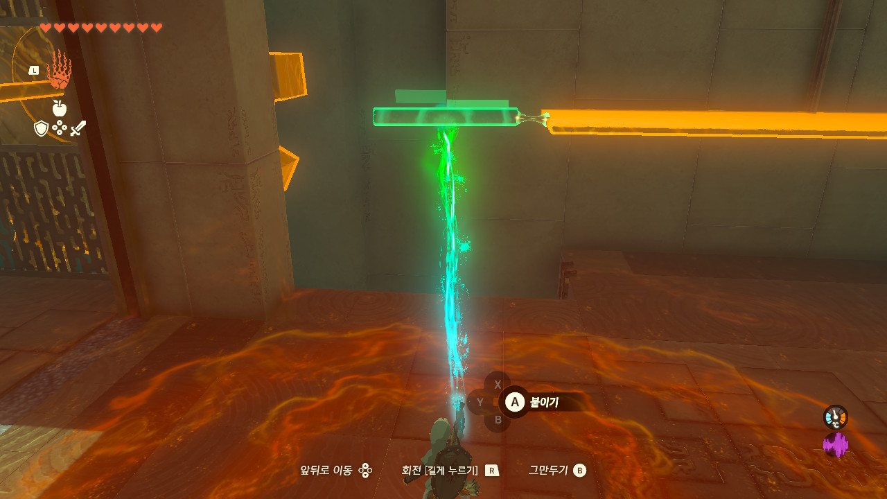 아래와 같이 기둥을 올려서 보물상자를 붙여서 내려오게 하면 되는데.. 쩝