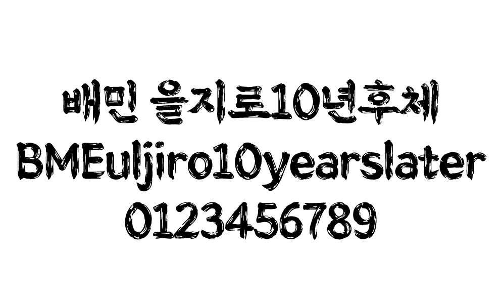 '배민 을지로10년후체'는 '배민 을지로체'의 10년 후 모습을 상상하여 만들었습니다.