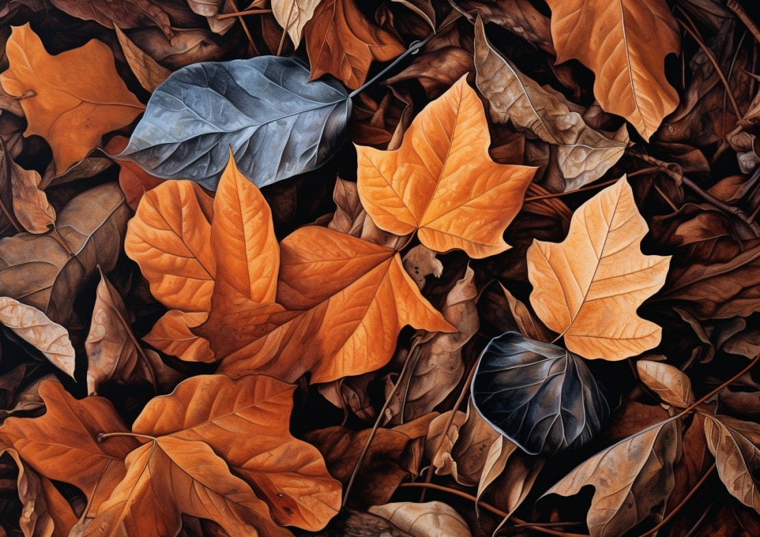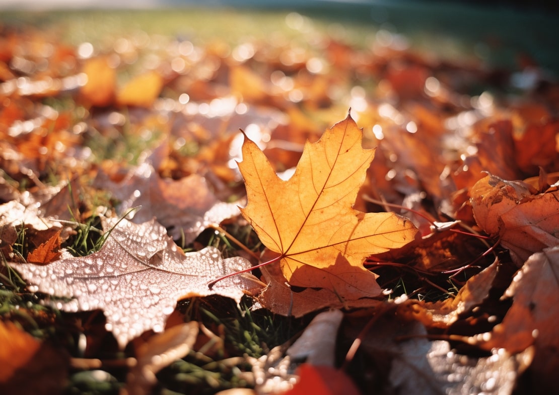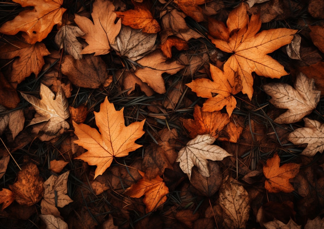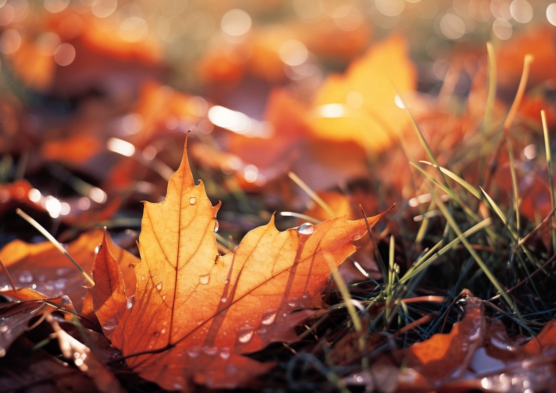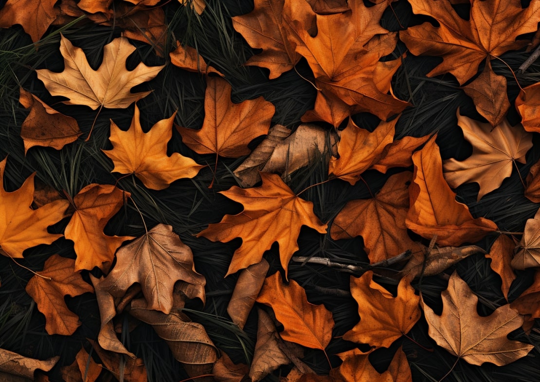 잔디 위의 화려한 나뭇잎 무료 배경 이미지