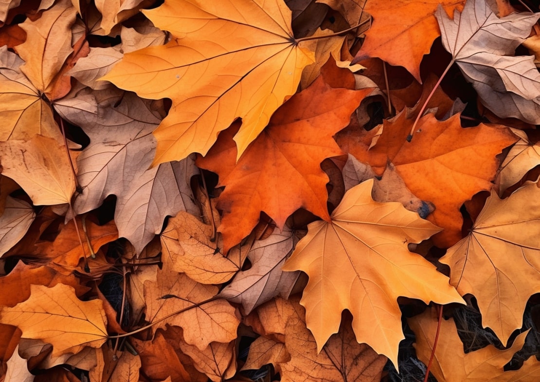 잔디 위의 화려한 나뭇잎 무료 배경 이미지