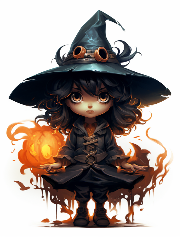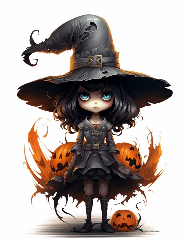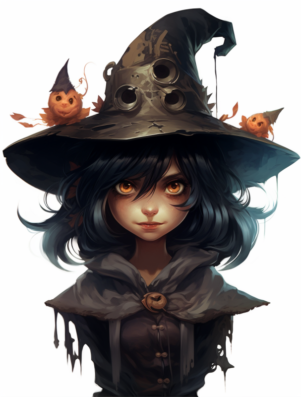 마녀 모자를 쓴 만화 캐릭터 이미지