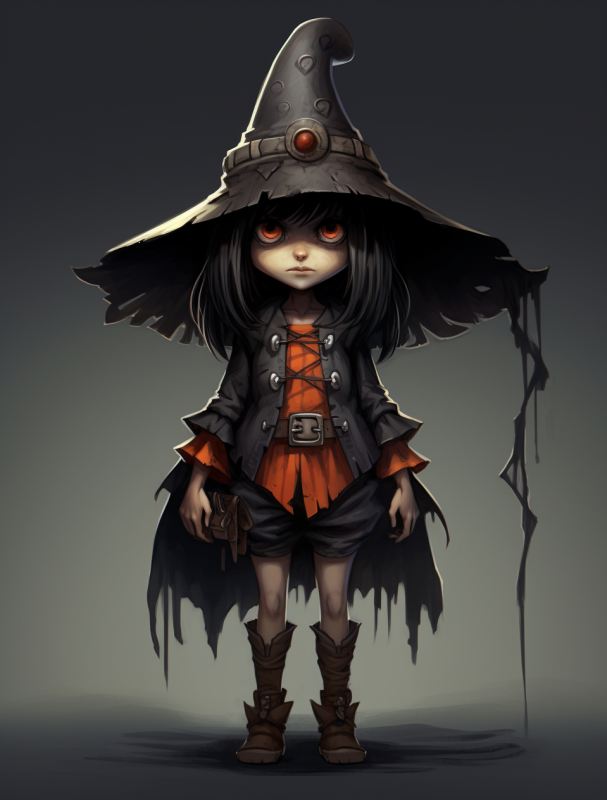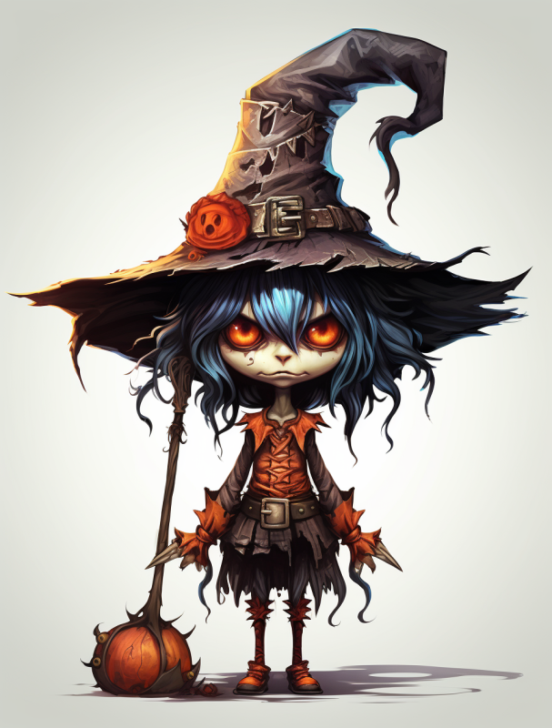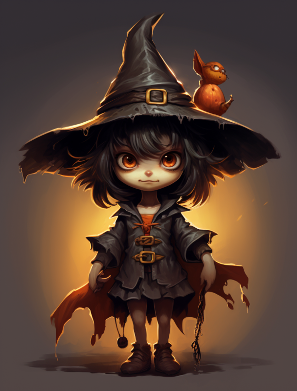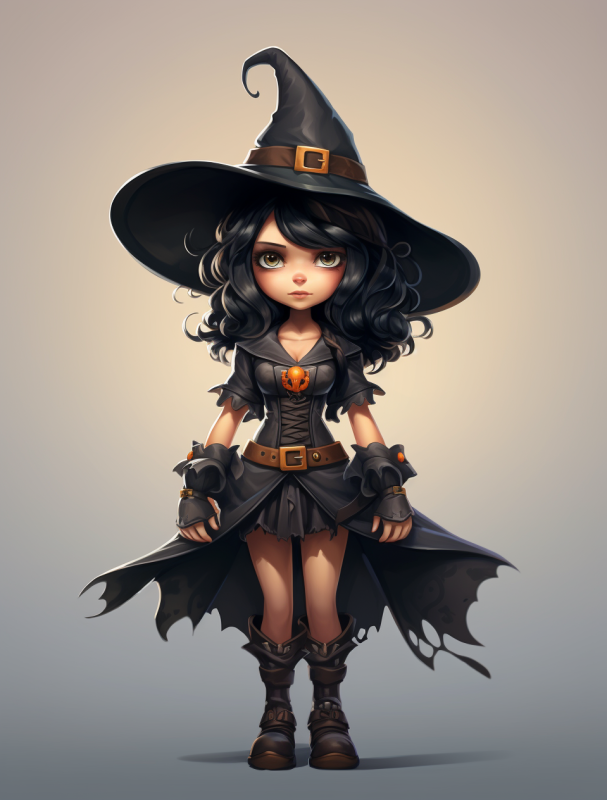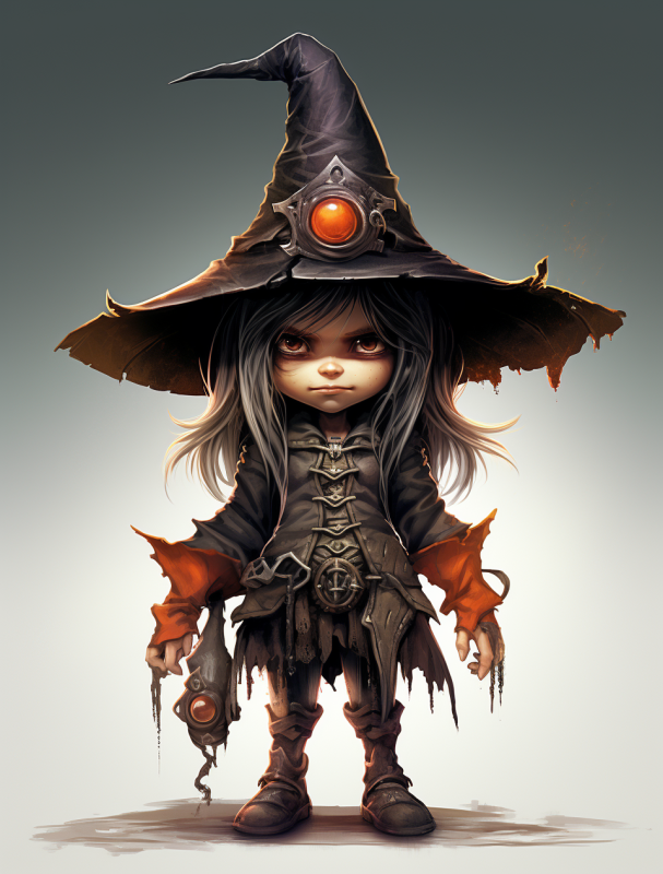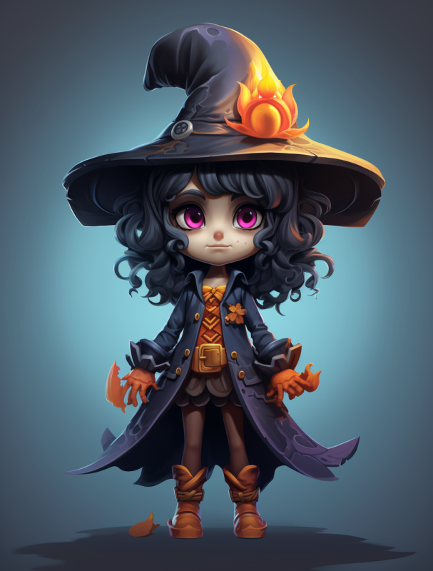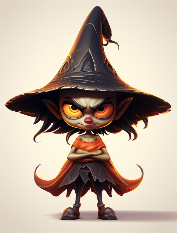 a cartoon character with a witches hat, in the style of nintencore, detailed character design --ar 82:107