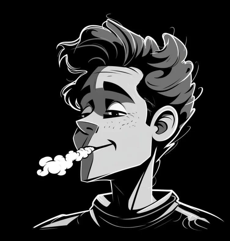 smoker man head image, in the style of scott mccloud, playful use of negative space, alex hirsch, smilecore, seth macfarlane, boldly black and white, animated gifs --ar 71:74