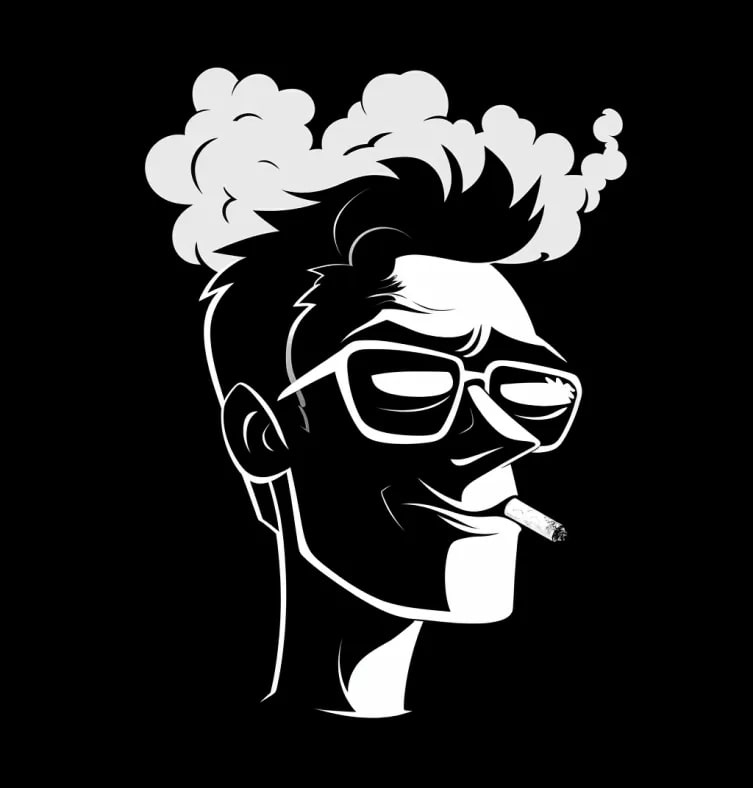 smoker man head image, in the style of scott mccloud, playful use of negative space, alex hirsch, smilecore, seth macfarlane, boldly black and white, animated gifs --ar 71:74