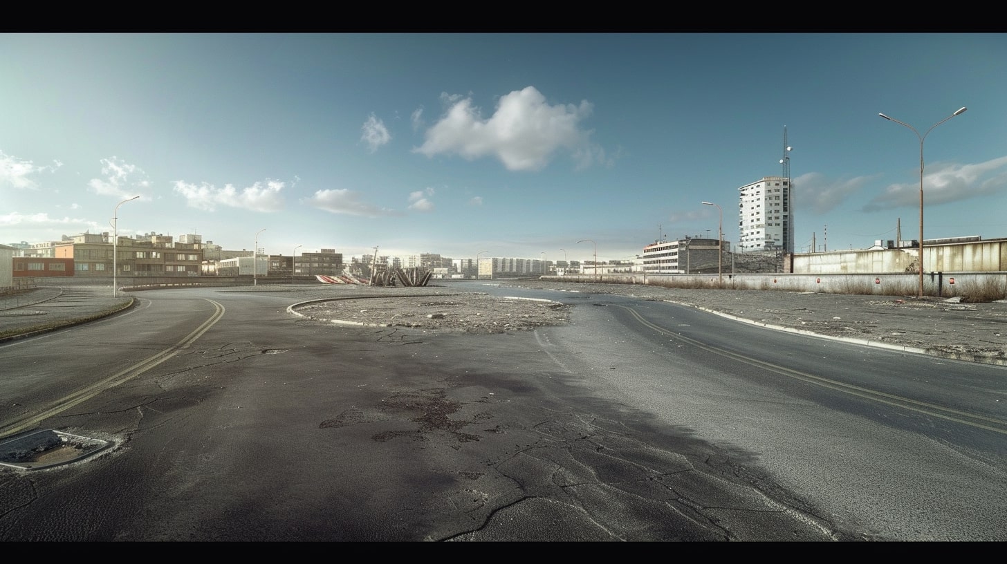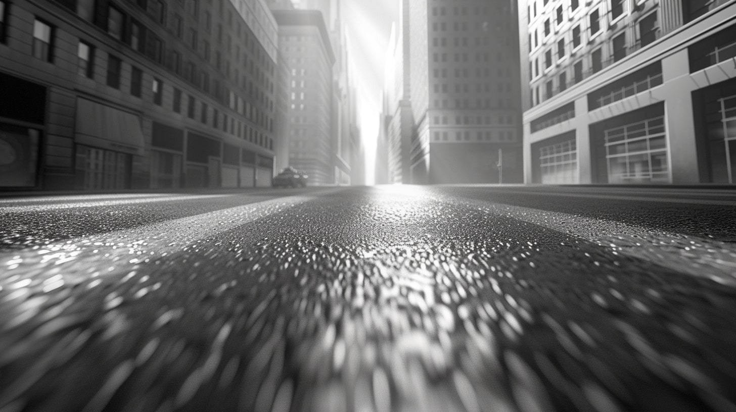 asphalt asphalt on the city, in the style of perspective rendering, ricoh ff-9d, light silver, dusan djukaric, panorama, smooth curves, commercial imagery --ar 16:9 --v 6.0