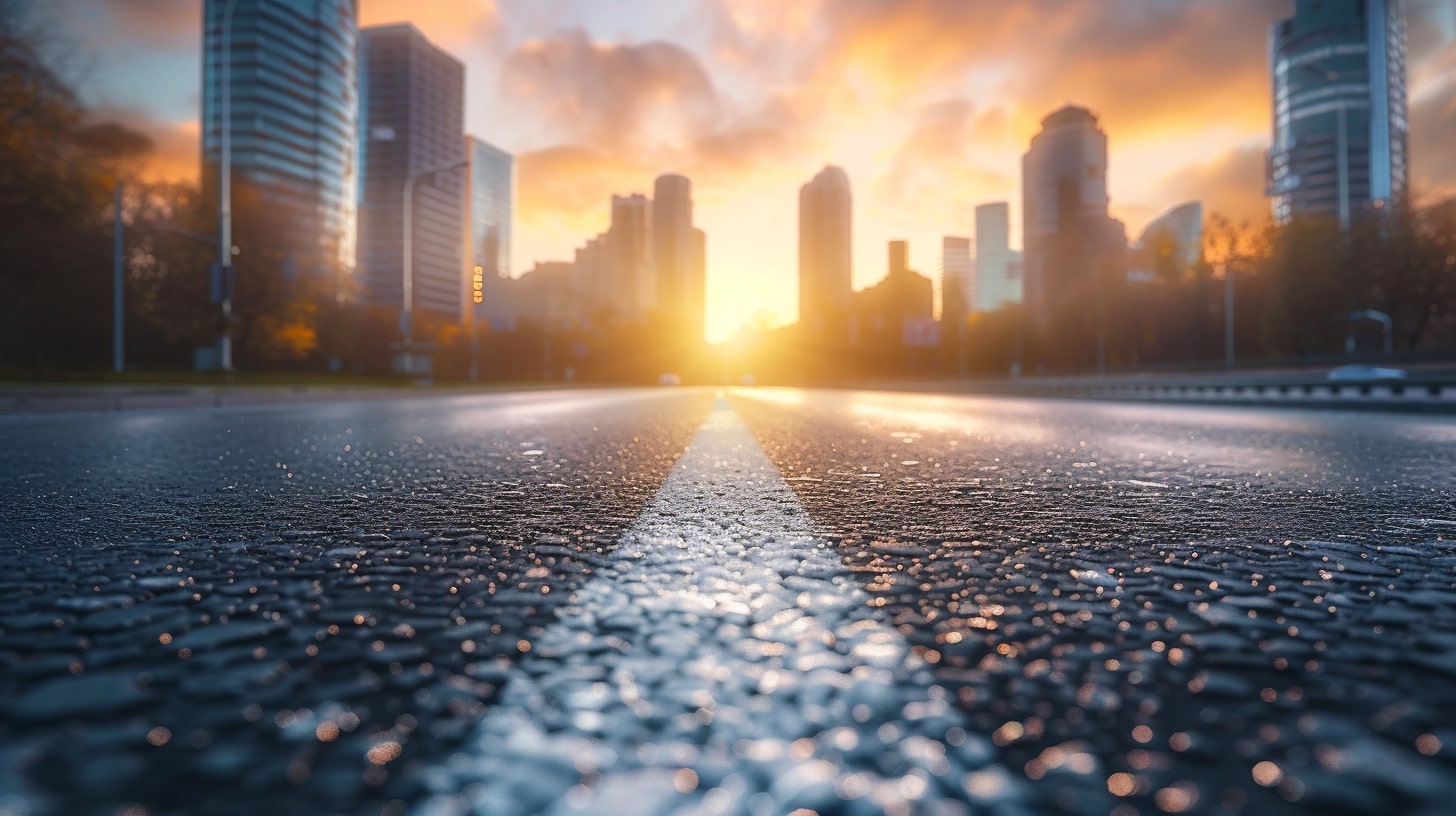 asphalt asphalt on the city, in the style of perspective rendering, ricoh ff-9d, light silver, dusan djukaric, panorama, smooth curves, commercial imagery --ar 16:9 --v 6.0