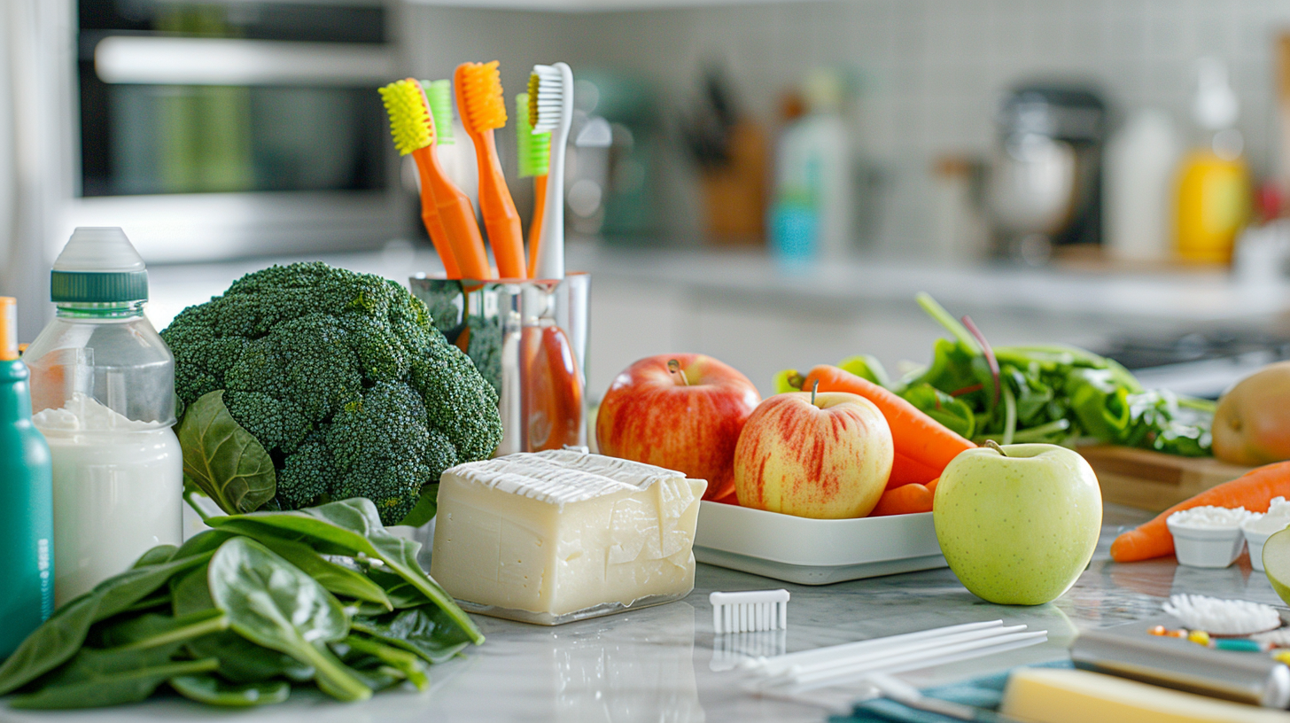 비타민 C와 A가 풍부한 채소와 과일은 잇몸 건강을 지키는 데 필수적입니다. 시금치, 브로콜리, 당근, 사과와 같은 식품은 잇몸을 튼튼하게 해주며, 과일을 섭취할 때는 씹는 행위가 자연스러운 치아 청소 역할을 해줍니다. - 유제품: