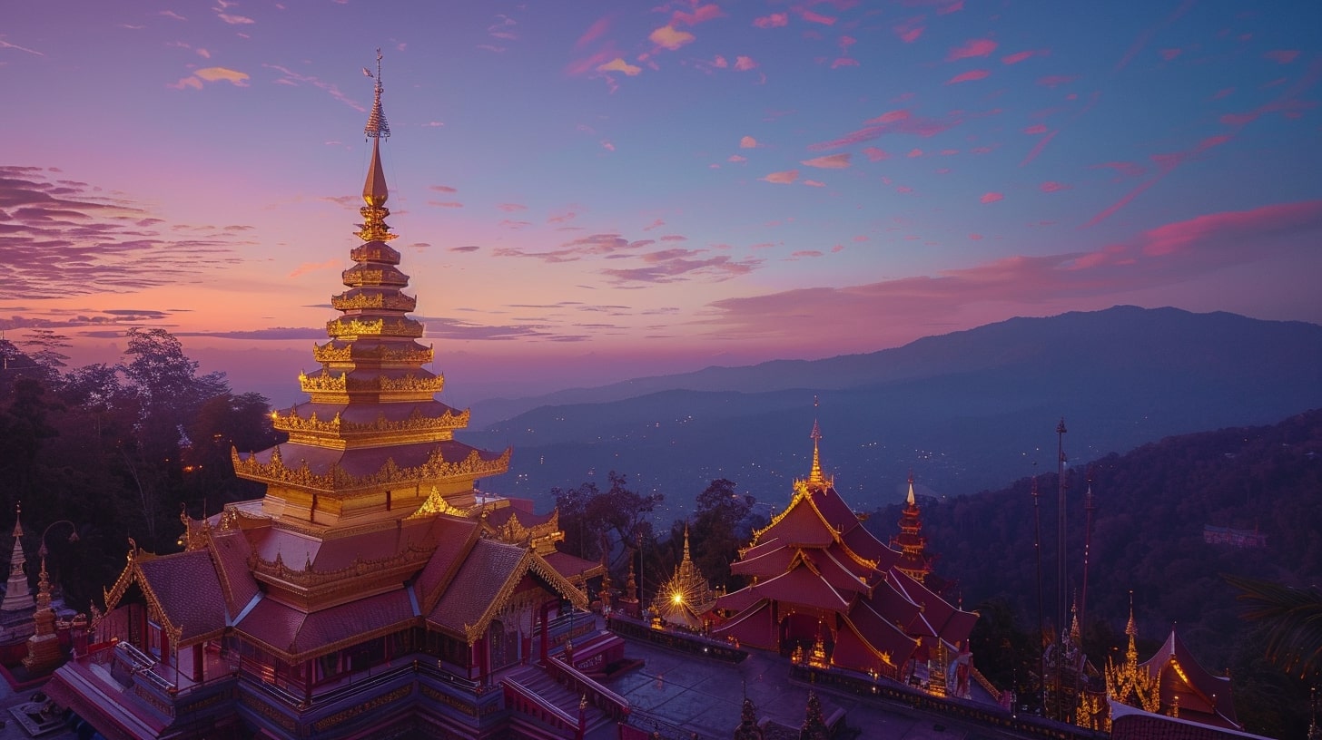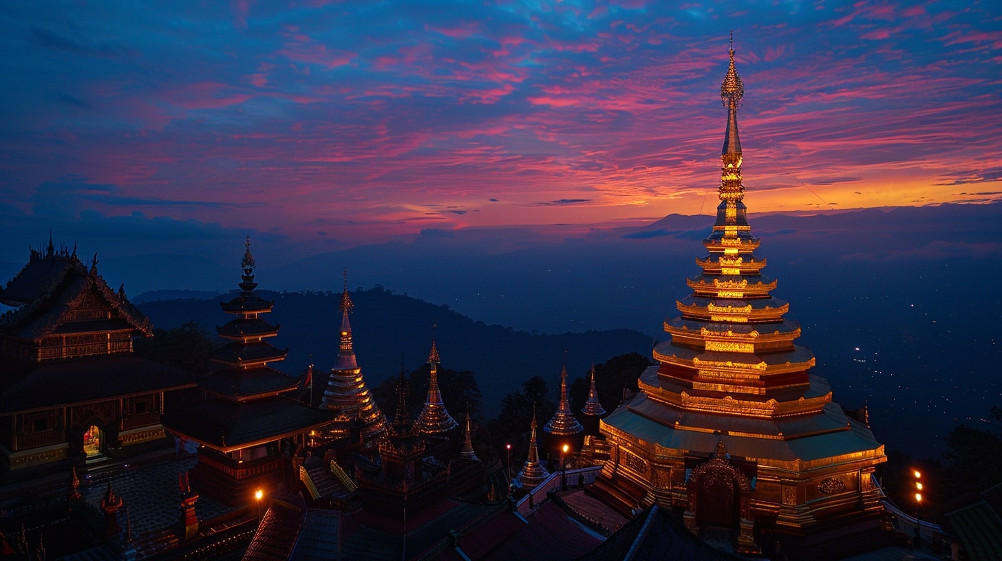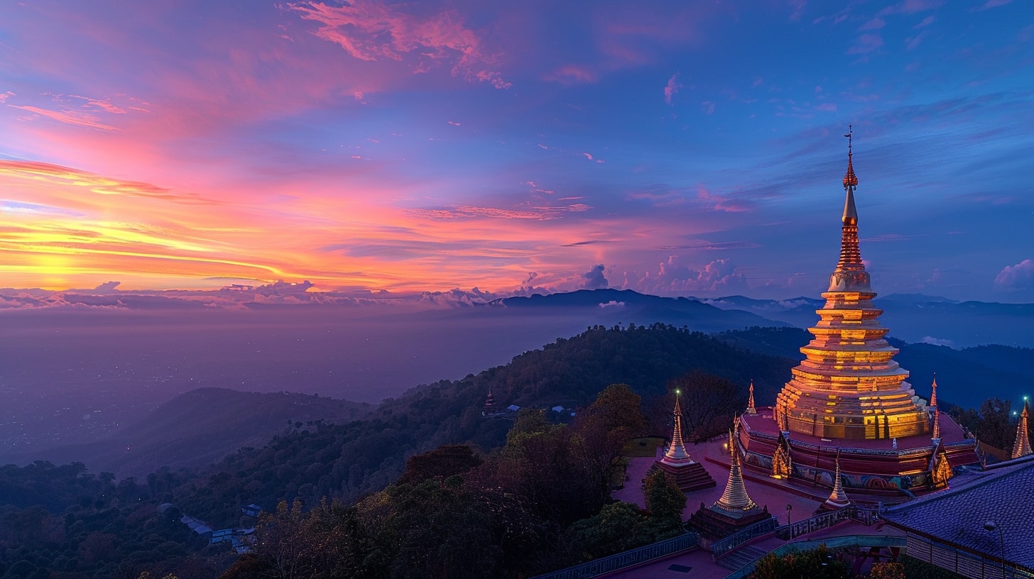 (태국) 새벽 빛에 물든 도이 수텝의 영적 여명