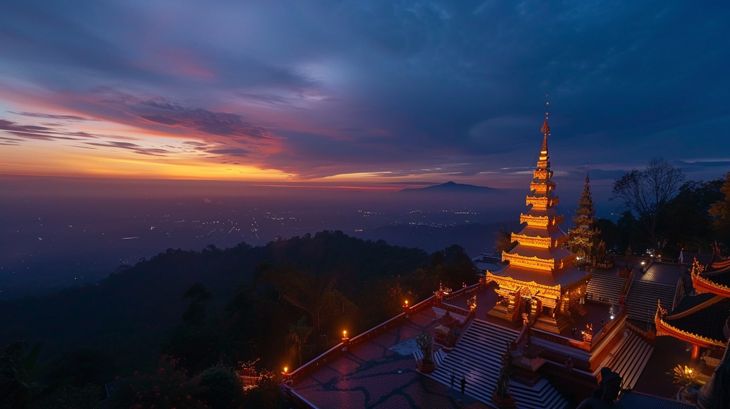(태국) 새벽 빛에 물든 도이 수텝의 영적 여명