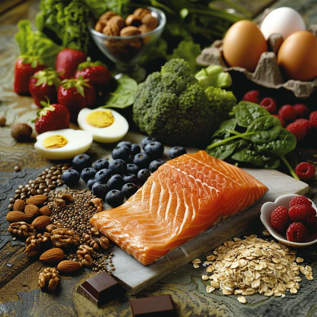 딸기, 블루베리, 아사이베리와 같은 베리류, 다크 초콜릿, 시금치, 브로콜리 등은 신체적, 정신적 스트레스로부터 세포를 보호하는 데 도움을 줍니다. - 비타민 D: