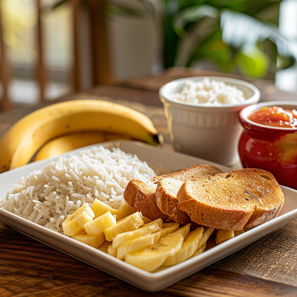 이 음식들은 BRAT 식단의 일부로, 설사와 같은 증상을 완화시키는 데 도움을 줄 수 있습니다. 이 외에도 가벼운 닭가슴살, 생선, 요구르트 등 단백질이 풍부하고 소화가 쉬운 음식도 좋습니다.