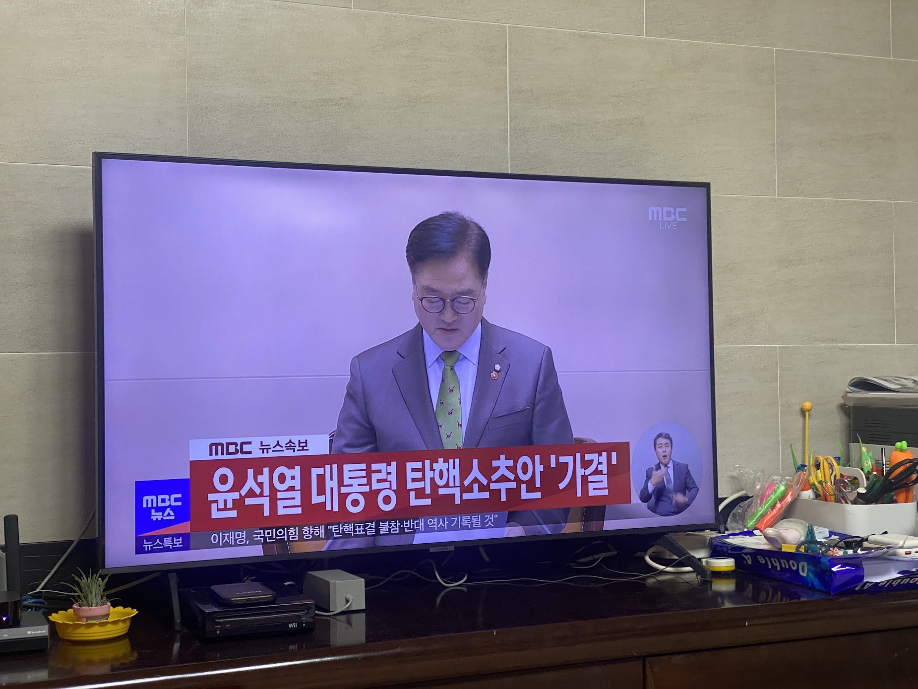 2024년 12월 14일, 대한민국 국회에서 윤석열 대통령의 탄핵소추안이 가결되었습니다.