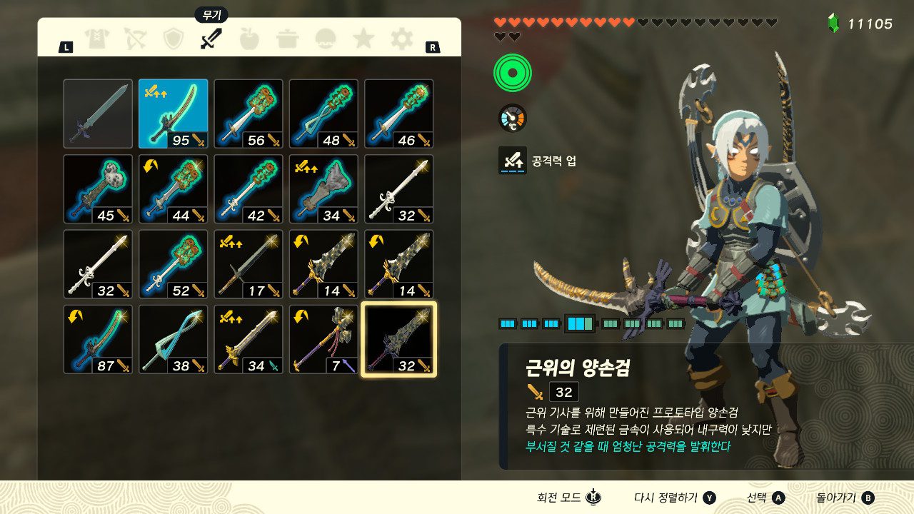 근위의 양손검은 하이랄 성안에 얻을 수 있는데 붉은 달이 뜨고 나면 매번 파밍이 가능하여