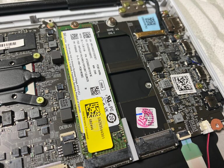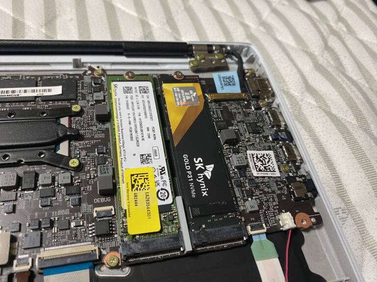 이제 분리한 하부에 우상단쪽에 보면 SSD 빈 슬롯이 하나 보인다.