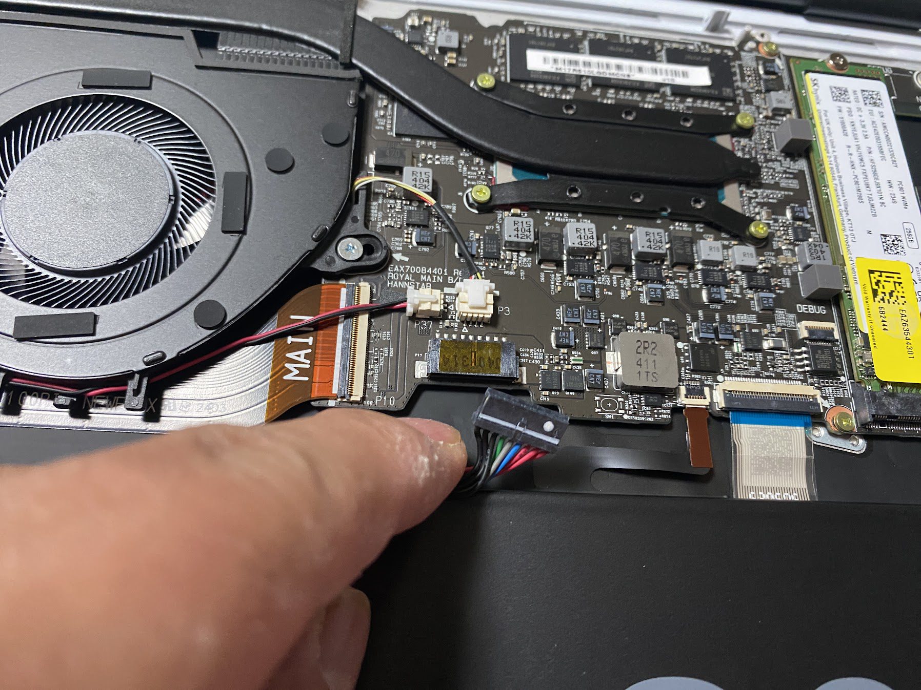 새로 구매한 SSD를 꼳으면 되는데, 혹시 모르니 밧데리 잭은 분리 한뒤 끼우고 다시 밧데리 잭을 꼳길 바란다.