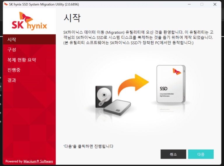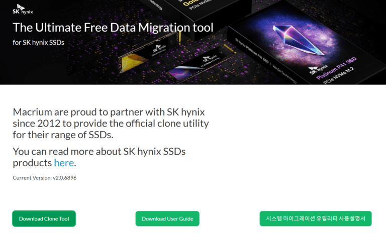 아래 공식 홈에서 무료 마이그레이션 프로그램을 다운받아 사용하면 되는데, 하이닉스 SSD가 아니면 작동이 안되니 참고하시길~