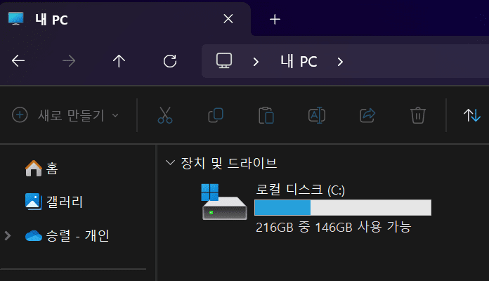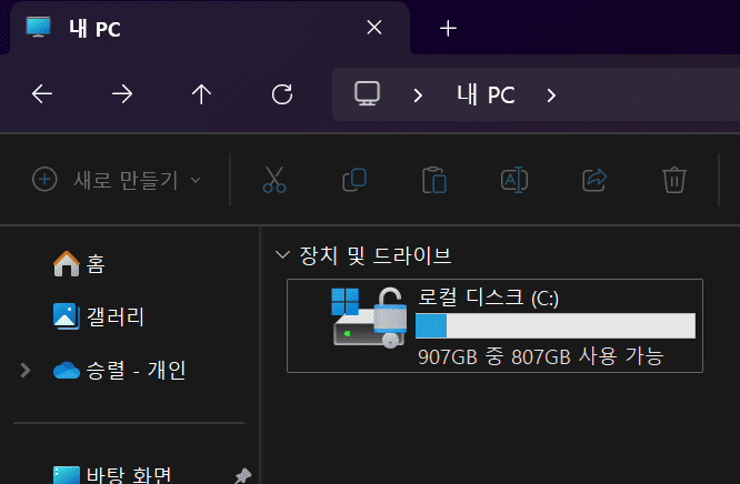 기본 C드라이브가 256기가였는데~ 1테라로 바뀌어 이제 넉넉하게 사용할 수 있게 되었다!