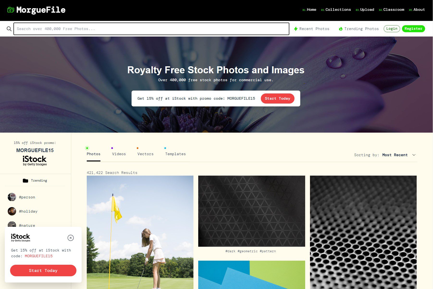 Morguefile은 사용자가 상업적 용도로 무료로 사용할 수 있는 고품질의 사진을 제공하는 웹사이트입니다. 이 사이트는 다양한 카테고리의 이미지를 제공하며, 사용자들이 직접 자신의 사진을 업로드하고 공유할 수 있는 기능도 있습니다. 사진을 검색하고 필터링하는 기능이 특히 효과적이며, 이미지를 쉽게 찾을 수 있도록 도와줍니다.