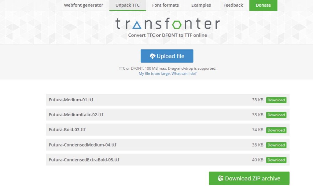 Convert TTC or DFONT to TTF online