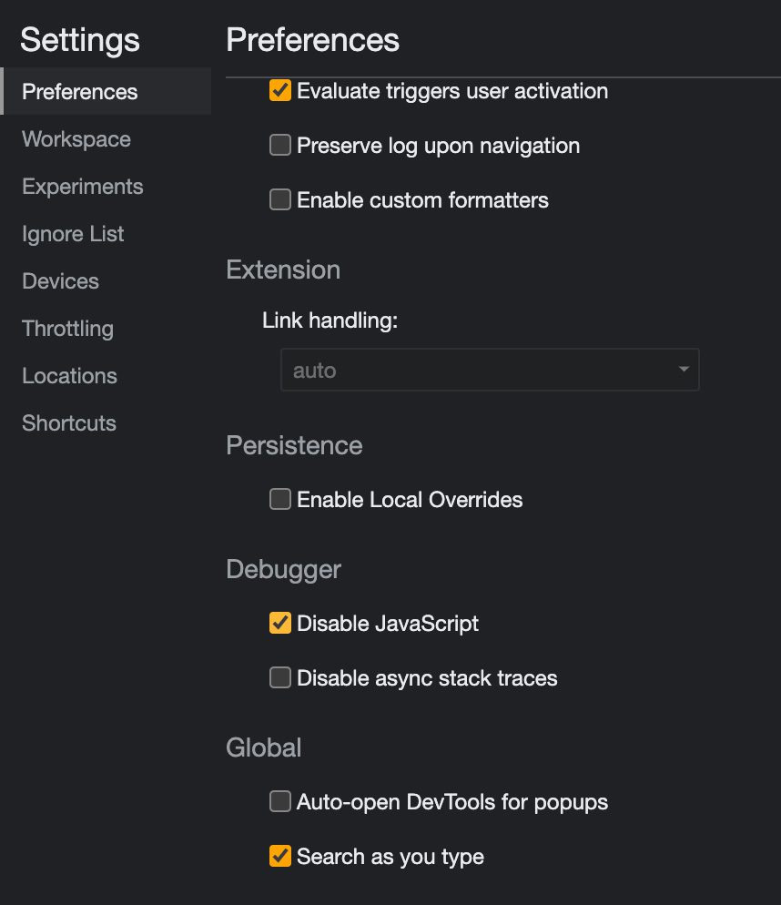 환경설정에 디버거 Debuger에서 자바스크립을 비활성화 하면 된다