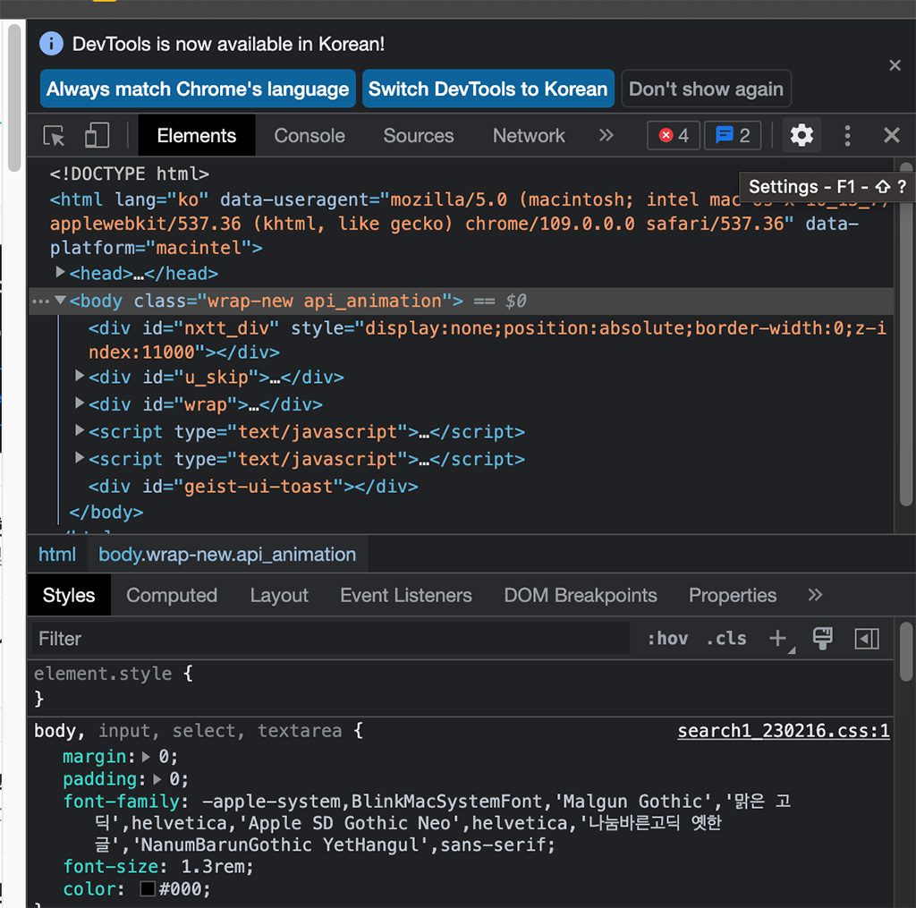 F12 버튼을 눌러 개발자 모드로 들어간다
