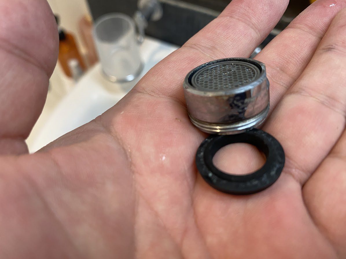 아래 같은 공구를 이용해서 수전 밑에 있는 필터를 돌려서 빼면 된다.