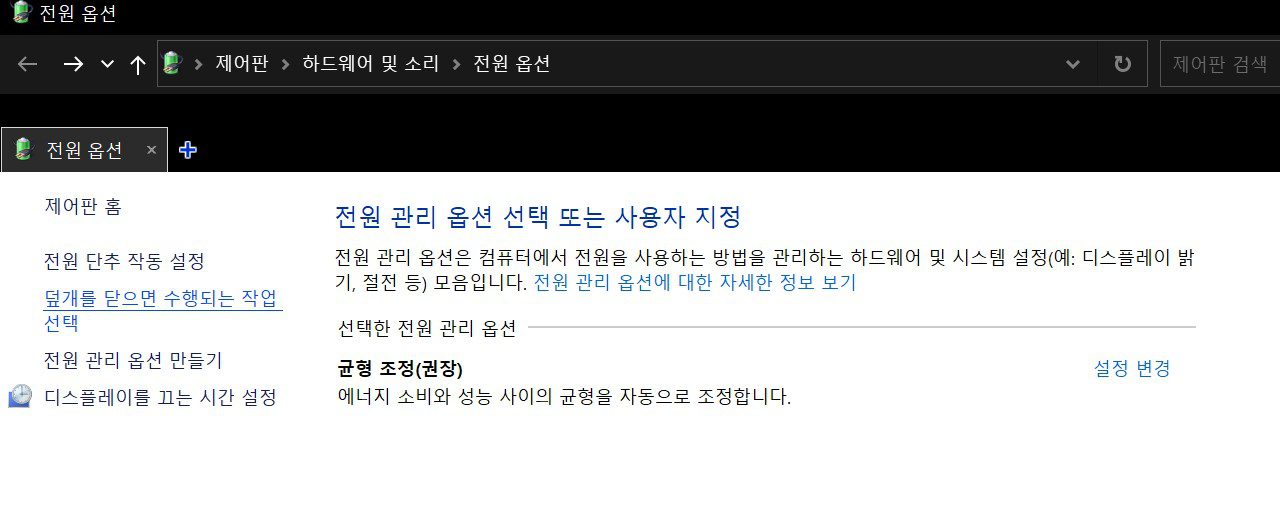 이럴때 맥북처럼은 아니지만, 덮개를 다시 열때 그냥 켜지게 하는 방법은 아래와 같다.