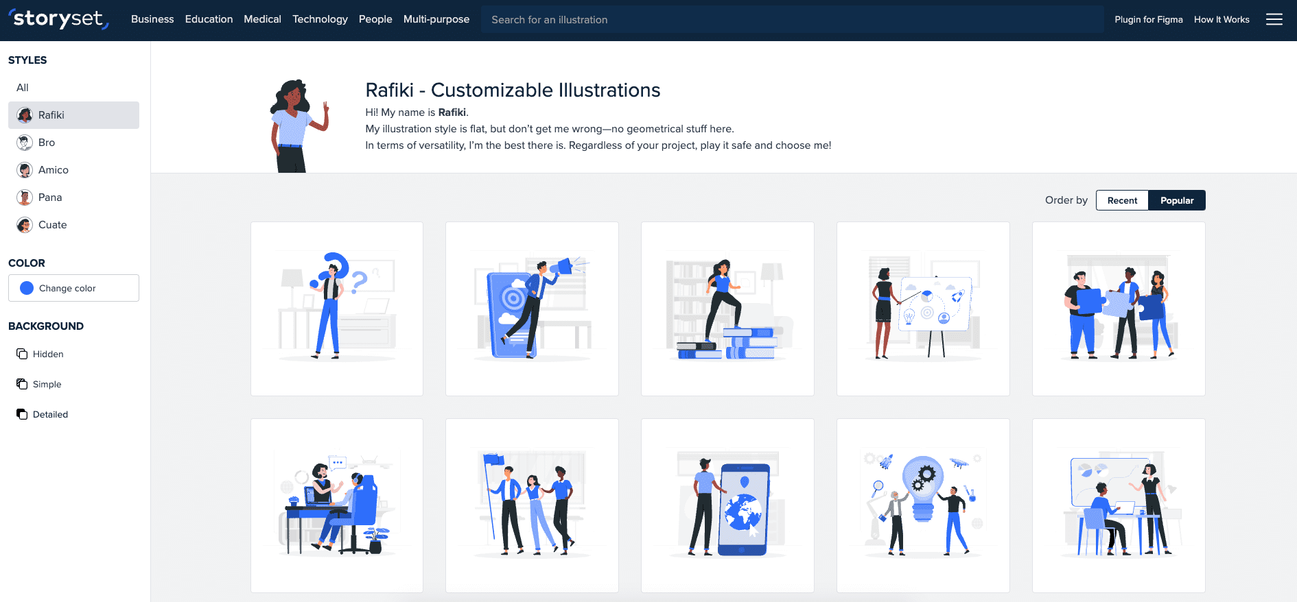 사이트에서 제공하는 일러스트레이션들은 특정 스타일에 국한되어 있어, 모든 프로젝트의 요구나 취향을 완전히 만족시키지 못할 수 있습니다. - 유사한 디자인의 반복:
