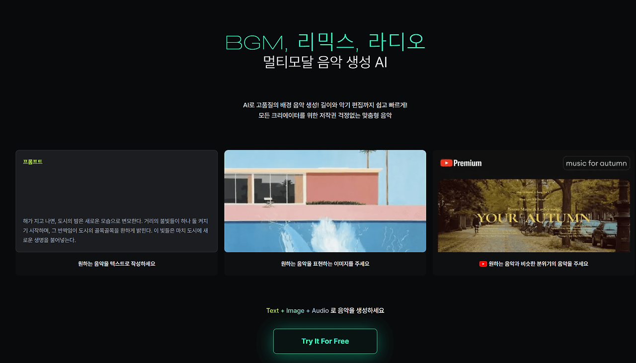 As creators, express your musical imagination with MixAudio 믹스오디오, a multimodal AI music generator - BGM, REMIX, RADIO.