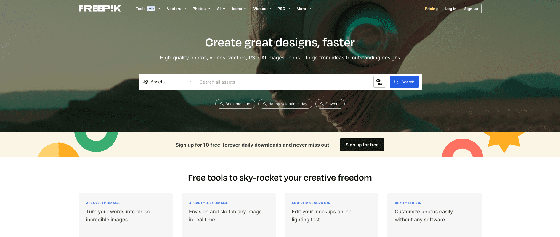하지만 모든 디자이너와 포토샵 사용자가 공감할 것이, 때로는 영감이나 자원이 부족하여 이 마법을 실현시키기 어렵다는 점입니다. 이런 문제를 해결하기 위해 저는 여러분에게 Freepik 사이트를 강력하게 추천하고 싶습니다.