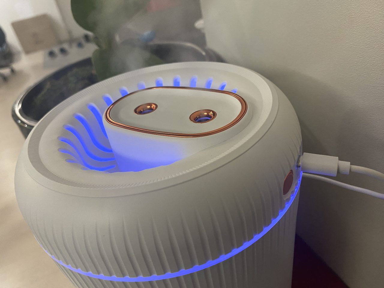 은은하게 조명도 나쁘지 않고, 우선 2개의 구멍으로 가습이 나오는데, 좋다.