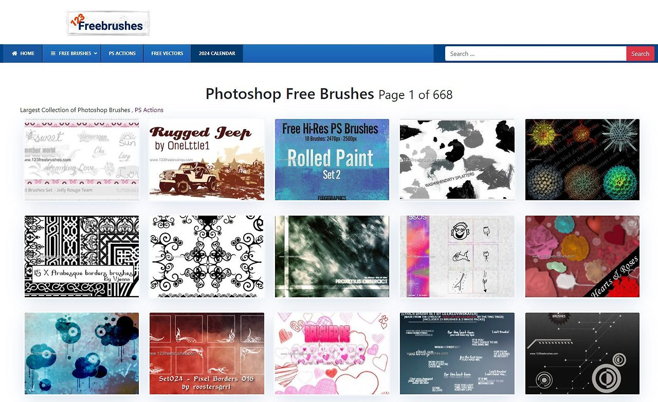 123FreeBrushes는 포토샵 사용자를 위한 무료 브러시 리소스를 제공하는 웹사이트입니다.